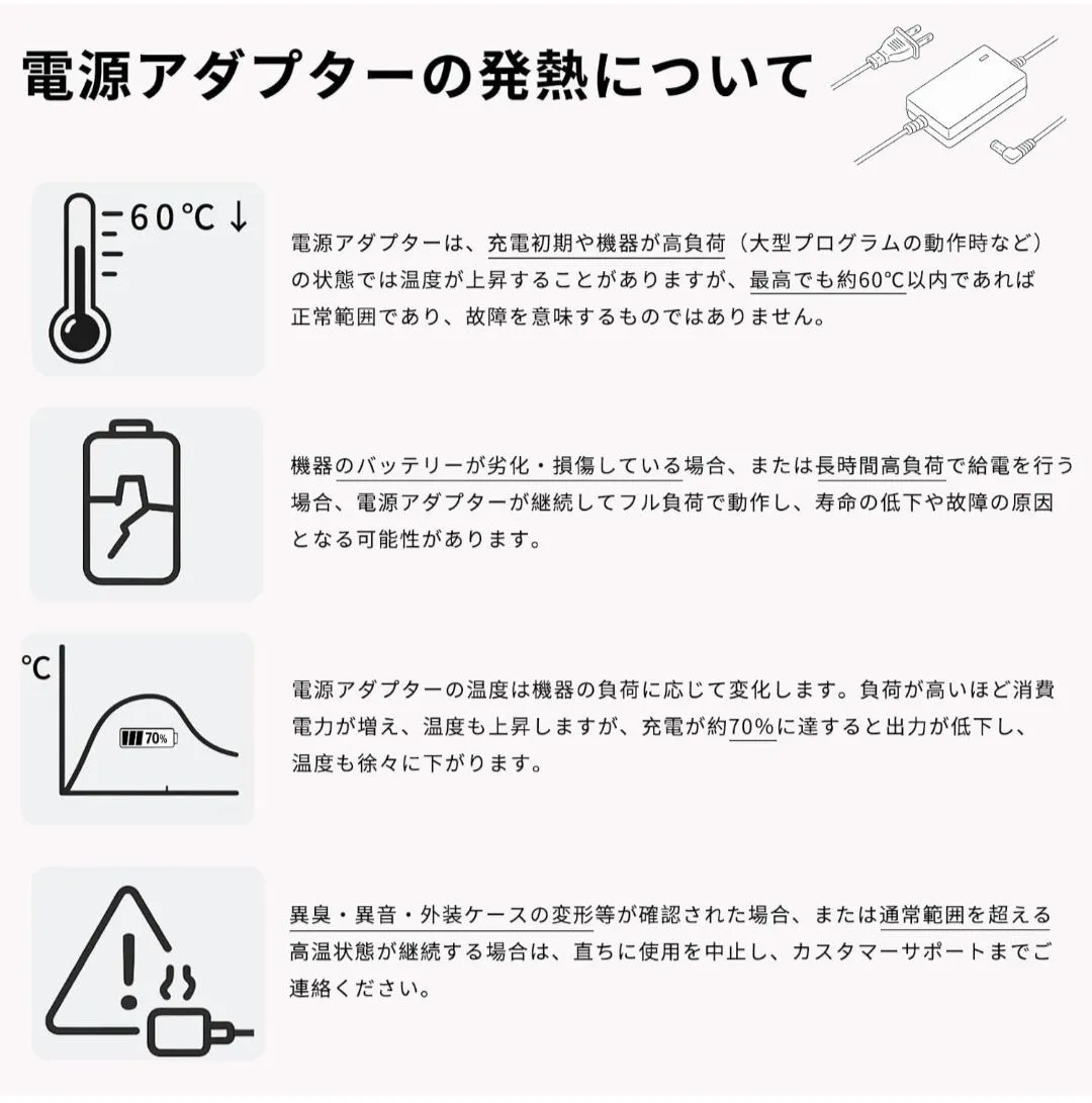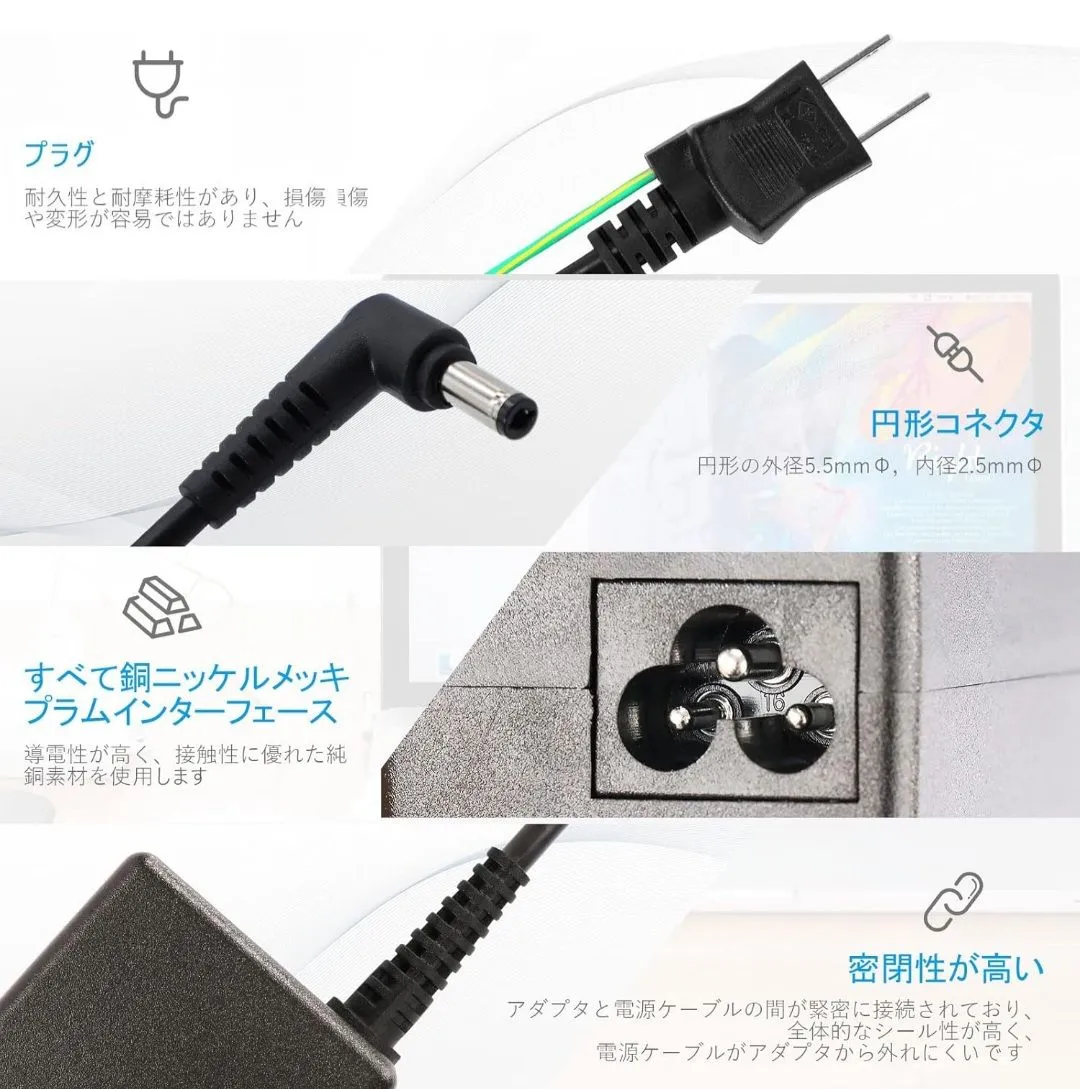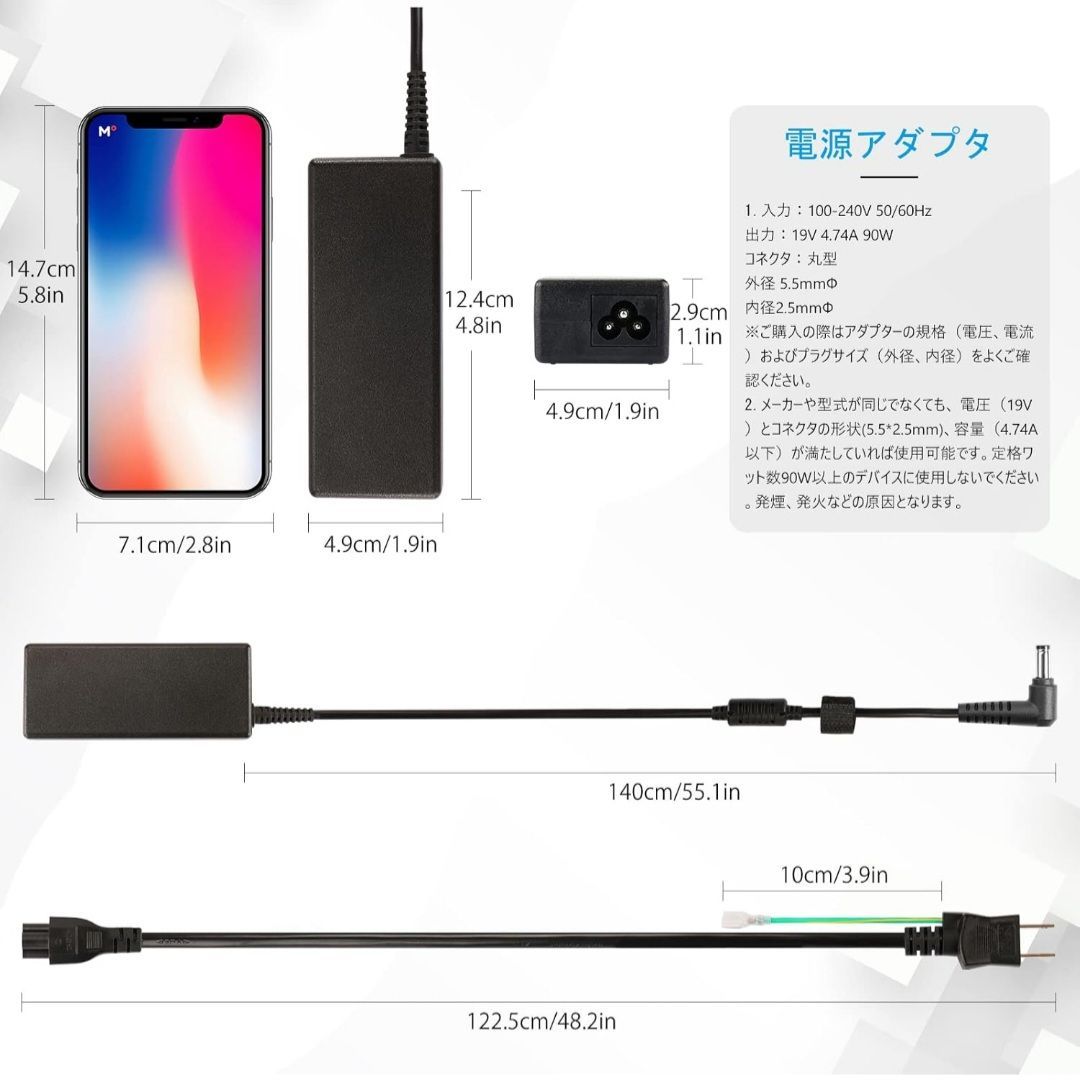 【商品仕様】出力:19V 4.74A 90W 入力:100~240V 50/60Hz プラグサイズ:5.5*2.5mm