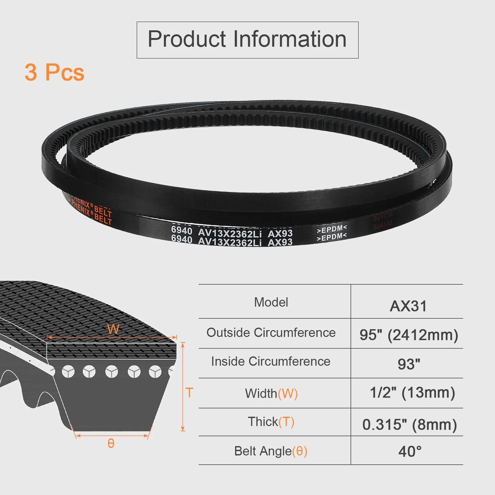 新品 uxcell AX93 EPDM Vベルト 3個 未加工エッジコグ工業用ゴムVベルト 幅1/2インチ x 内周93インチ