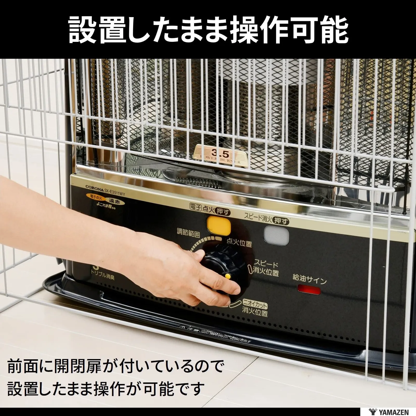 【設置したまま操作できる】 前面には開閉扉が付いているので、ストーブガードを設置したまま操作ができて便利です。
