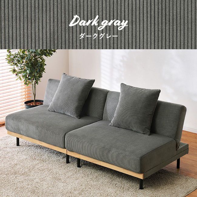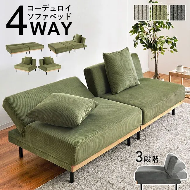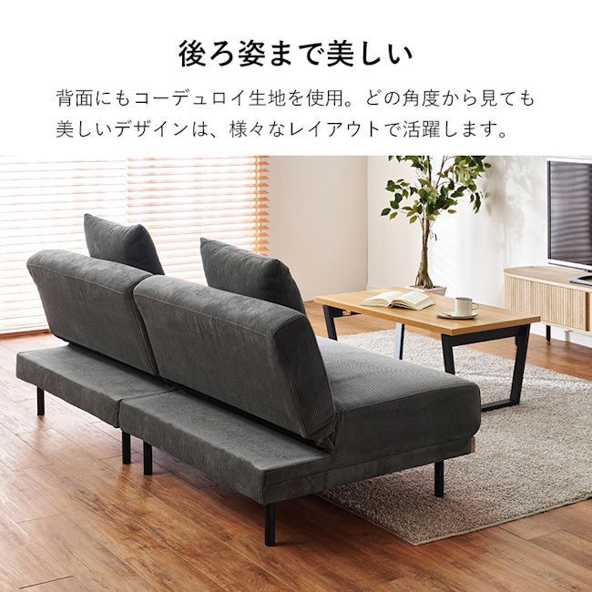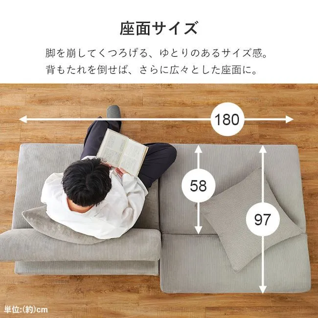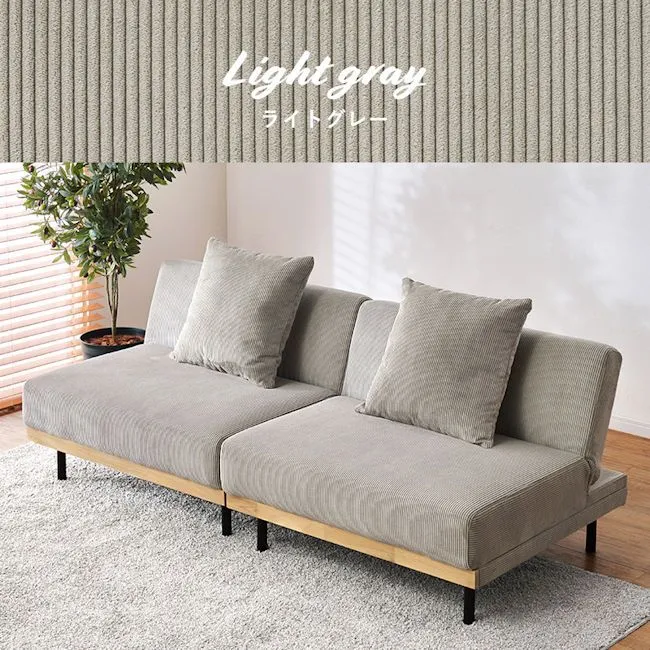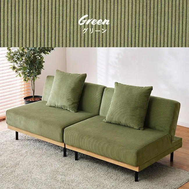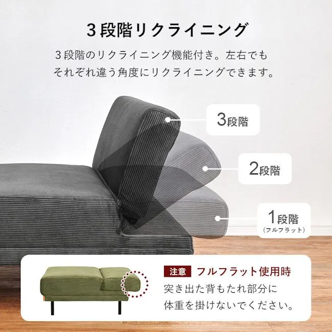 4通りの使い方が可能 コーデュロイソファベッド幅180cm 2人掛け リクライニングソファ ローソファ カウチソファ クッション付(1364)