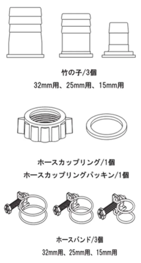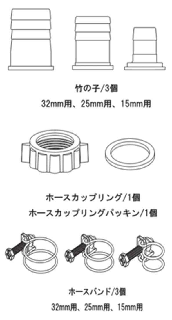 15mm、25mm、32mmのカップリング付属