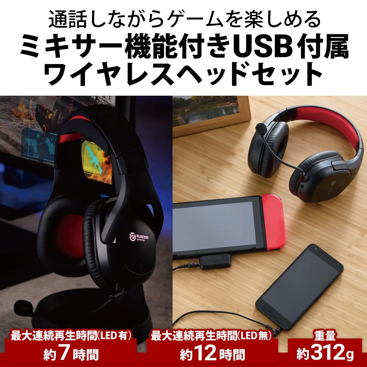 新品 エレコム ゲーミングヘッドセット ワイヤレス ミキサー機能付USB送信機付き サラウンド機能有 RGB [ PS 5 / 4 / NINTENDO SWITCH ] ミュート機能付 ブラック HS-GMW100BK