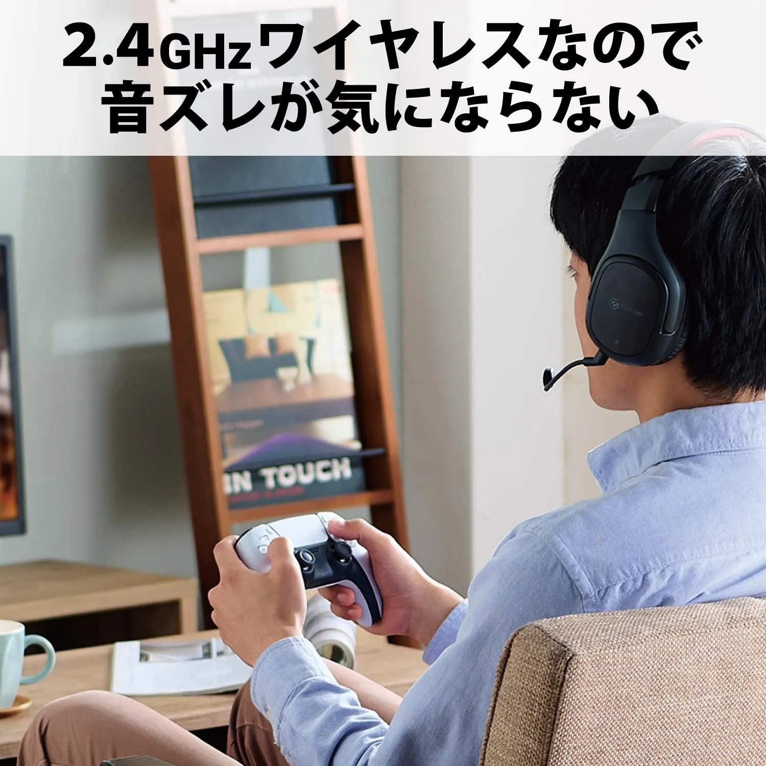 エレコム ゲーミングヘッドセット ワイヤレス ミキサー機能付USB送信機付き サラウンド機能有 RGB [ PS 5 / 4 / NINTENDO SWITCH ] ミュート機能付 ブラック HS-GMW100BK