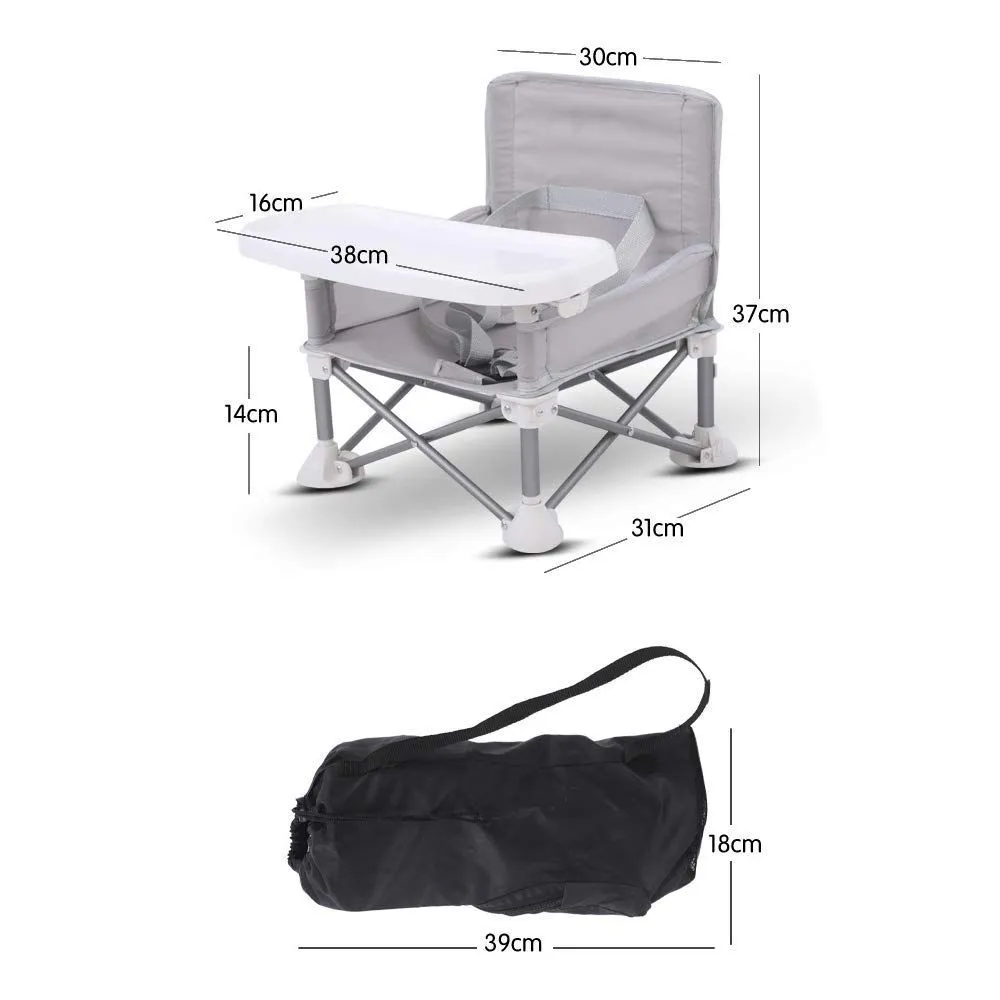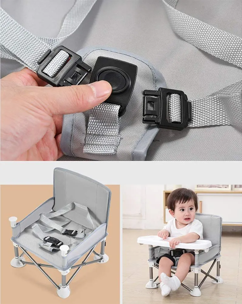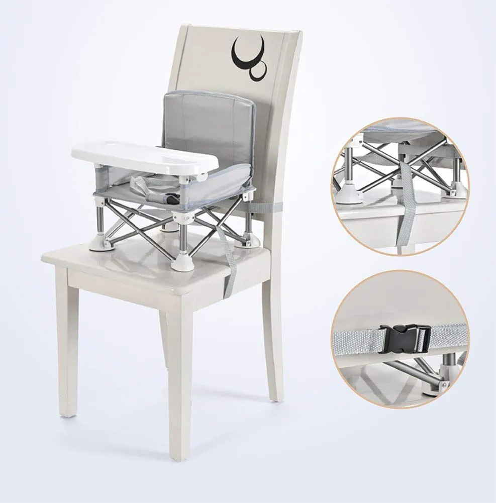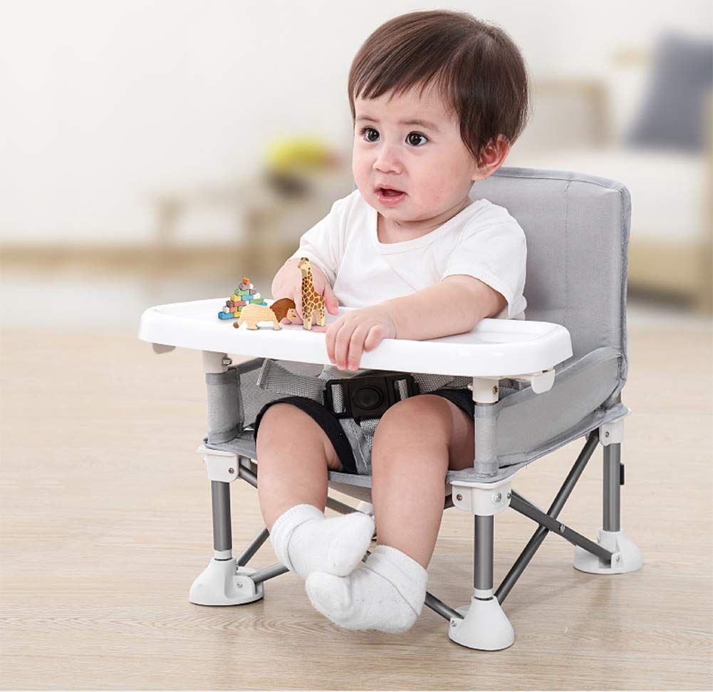 HB.YEベビーチェア テーブルチェア 子供 赤ちゃん 携帯 ダイニングチェア 食事 椅子 子供 お食事椅子 折り畳み携帯ベビーシート 赤ちゃんストラップのデザイン アルミダイニングテーブルと椅子 6ヶ月から3歳まで 大容量収納袋 多機能チェア (グレー 31 * 31 * 37cm)