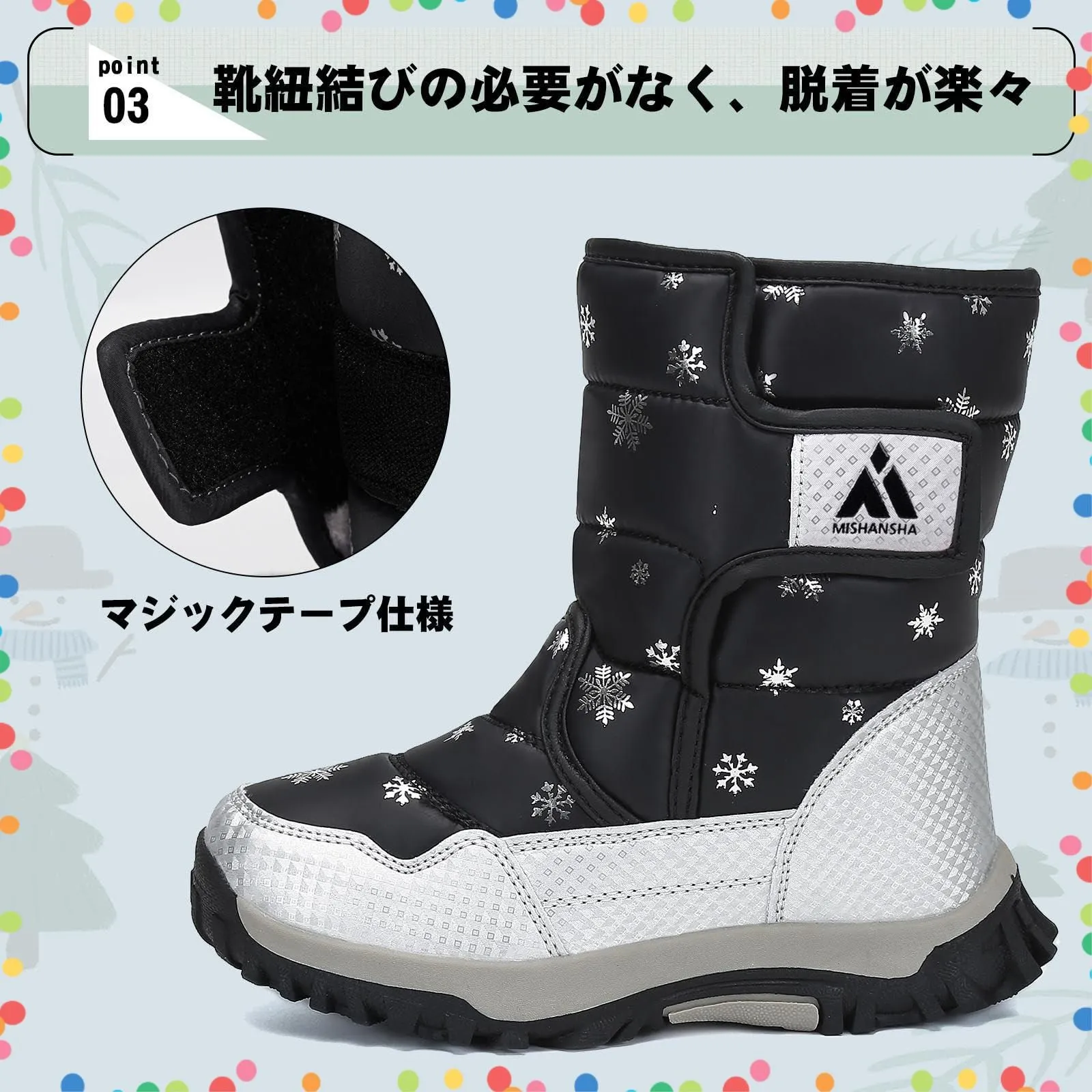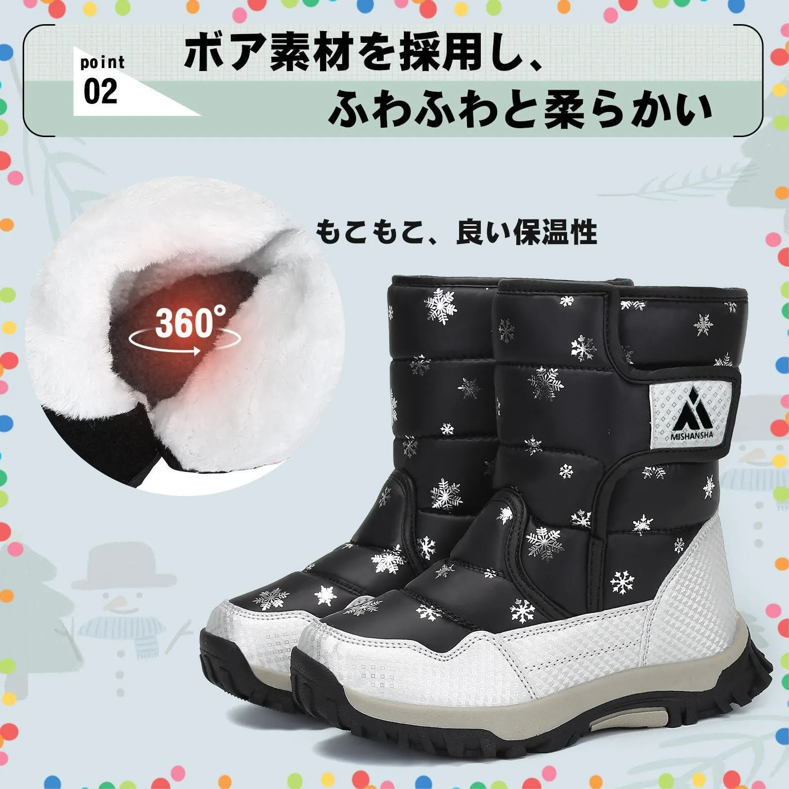 [Mishansha] スノーブーツ キッズ 冬 裏ボア 防寒 防水 防滑 ブーツ 雪遊び 子供 長靴 男の子 女の子