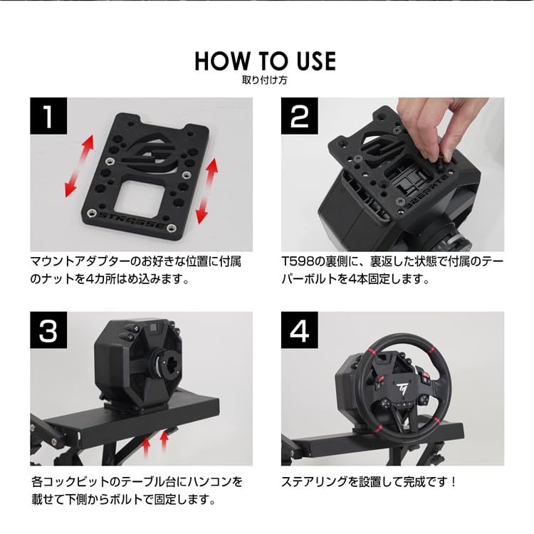 STRASSE T598マウントアダプター レーシングコックピット Thrustmaster T598 ハンコン ステアリング コントローラー スラストマスター ステアリング台 コックピット レーシングコックピット レーシングシミュレータe