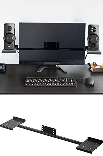モニターに一体化できるタイプのスピーカースタンドで、デスクの空間を有効活用でき、デスク周りのスペースを占領せずにスピーカーを設置できます。