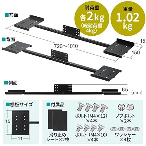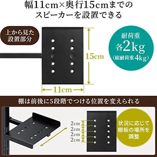 設置できるスピーカーは、2kgまでで幅11cm奥行15cmまでに対応しています。トレー部分は滑り止めシート付です。