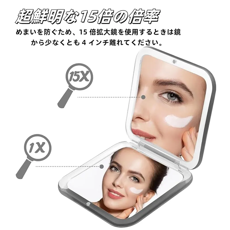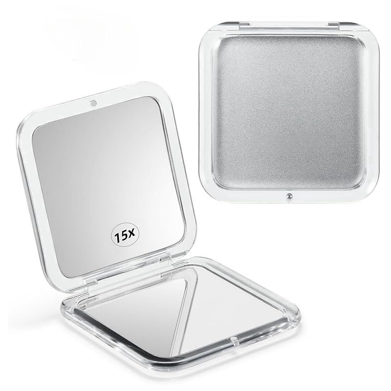 FUYULE コンパクトトラベル拡大鏡 小型コンパクト15倍拡大鏡 旅行用 ハンドヘルド 折りたたみ式 & 超軽量 両面 拡大鏡 ミラー 手持ち 化粧品 ミラー 携帯用 財布 ミラー 女性用 女の子用 トラベル コンパクト ミラー 折りたたみ ポケット 0