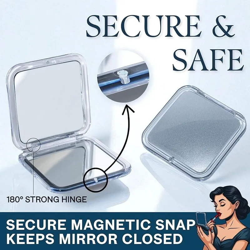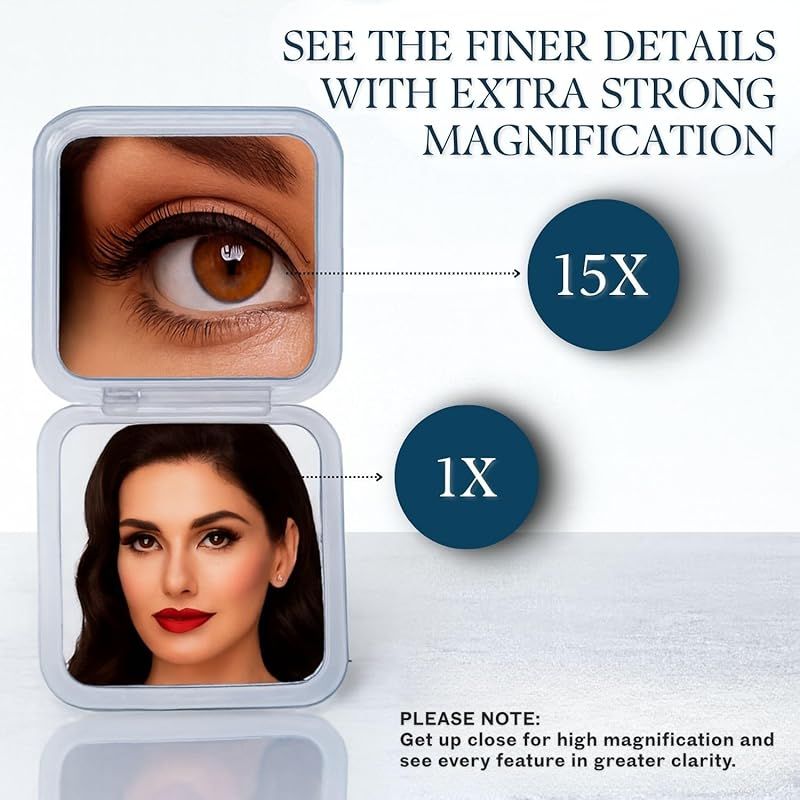 【商品説明】 MIRRORVANA 小型コンパクト15倍拡大鏡は、外出先でのグルーミングのための究極のポケットサイズの美容ツールです。 3.3 x 3.3インチの正方形のデザインで、小さくてもパワフルで、1倍の真のビューミラーと超高15倍の倍率ミラーの両方で完璧なディテールを提供します。 メイクアップ、ピンセット、コンタクトレンズを装着するときも、このミラーはあなたをカバーします。 重さはわずか96.5g(3.4オンス)で、軽量で旅行に便利で、ハンドバッグやトラベルバッグに簡単に収まります。 折りたたみ可能なデザインにより、使用しないときはコンパクトに保ちます。頑丈なヒンジで簡単に開閉でき、必要なときにいつでも準備が整います。 正午のレタッチや、正確なグルーミングが必要なときに最適です。15倍の倍率はクローズアップ作業用に設計されています。 極端な倍率のため、逆さまの反射を避けるためにミラーの近くにいる必要があります。これは高倍率ミラーに期待される機能です。