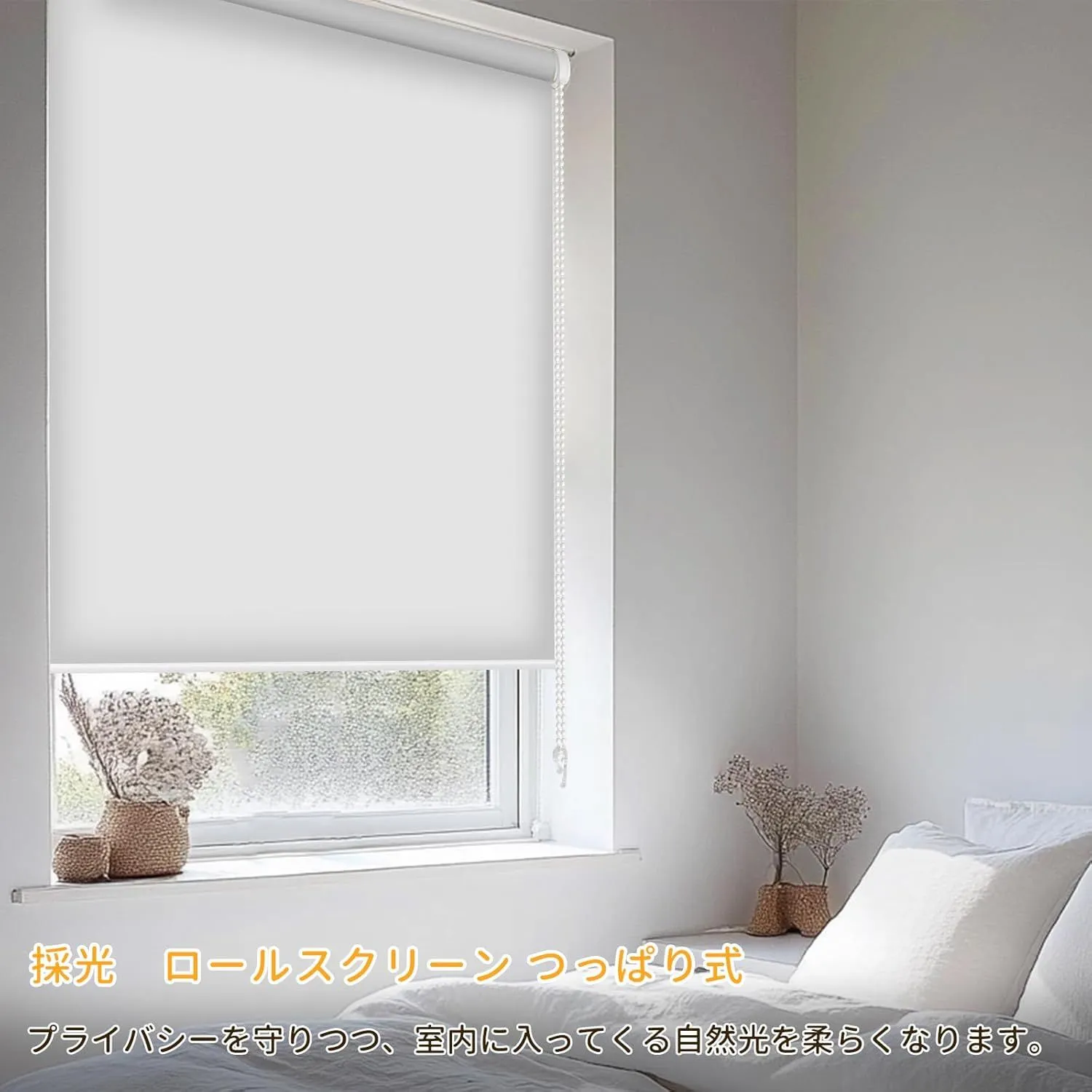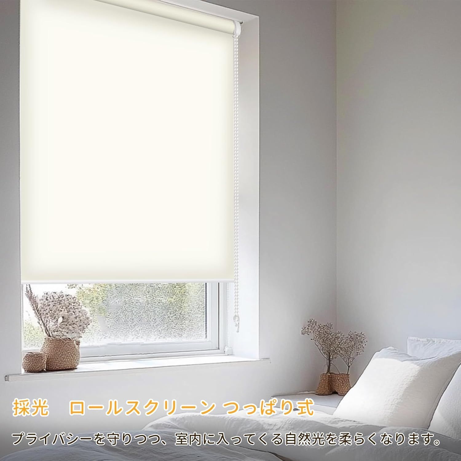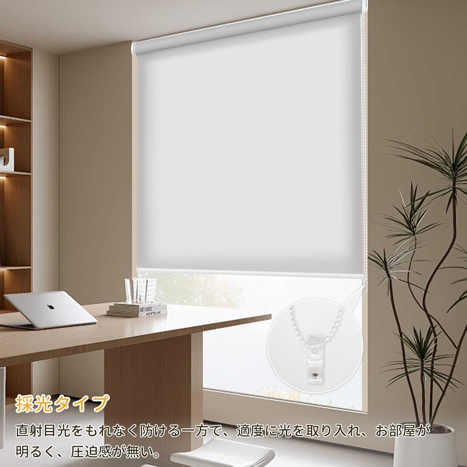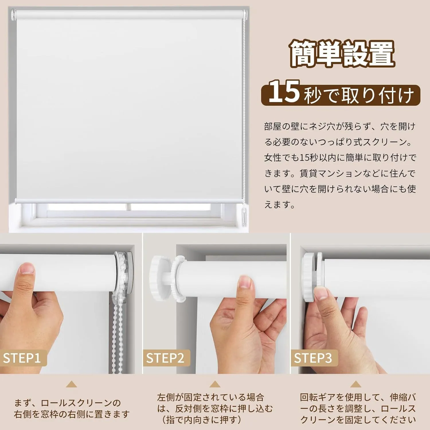 【賃貸OK】ロールスクリーン つっぱり 穴あけ不要 ネジ不要 1cm単位サイズオーダー可 遮光 採光 断熱 遮熱 UVカット 遮像 プライバシー保護 チェーン式 無地 ブラインド 押し入れ 目隠し 間仕切り キッチン 窓 3色対応
