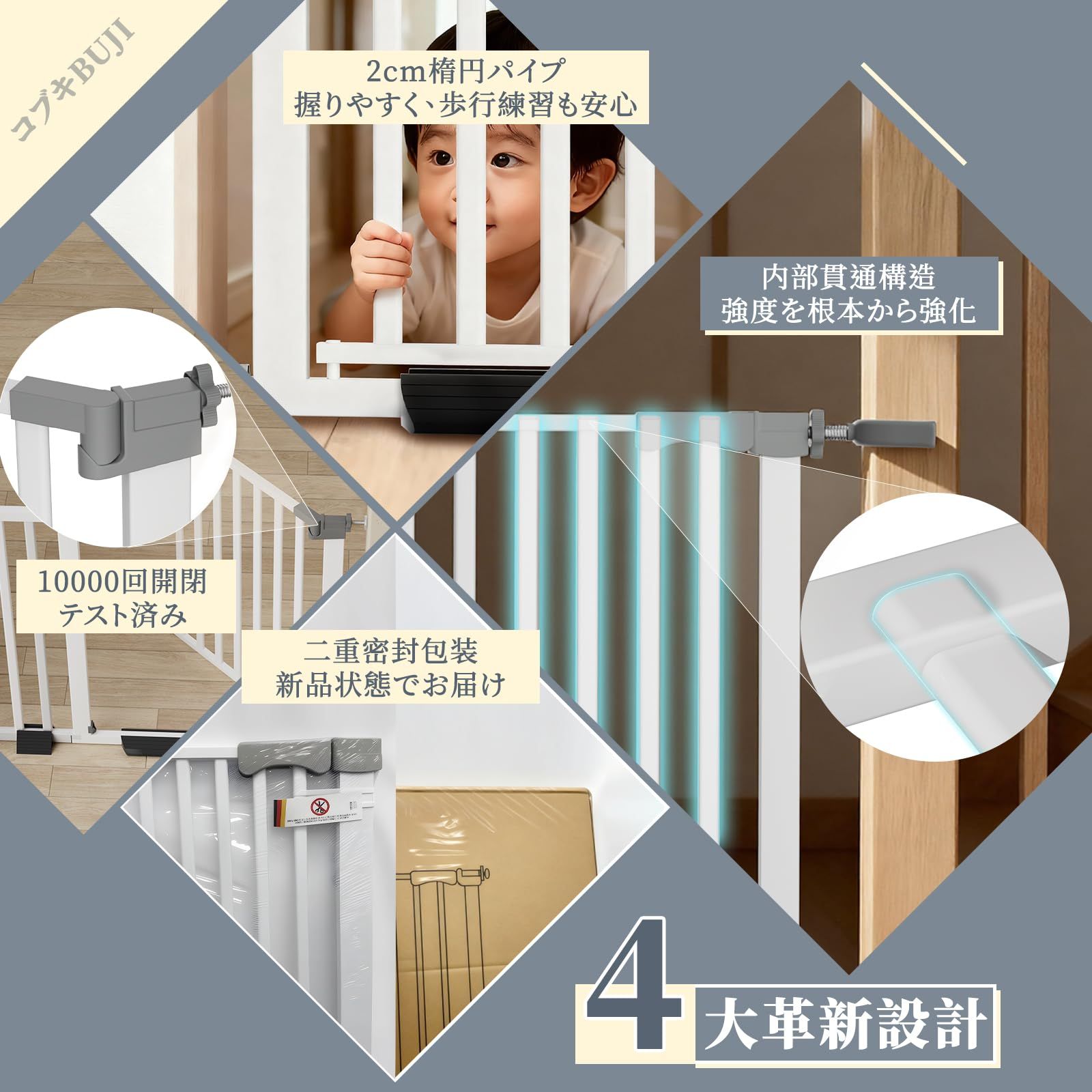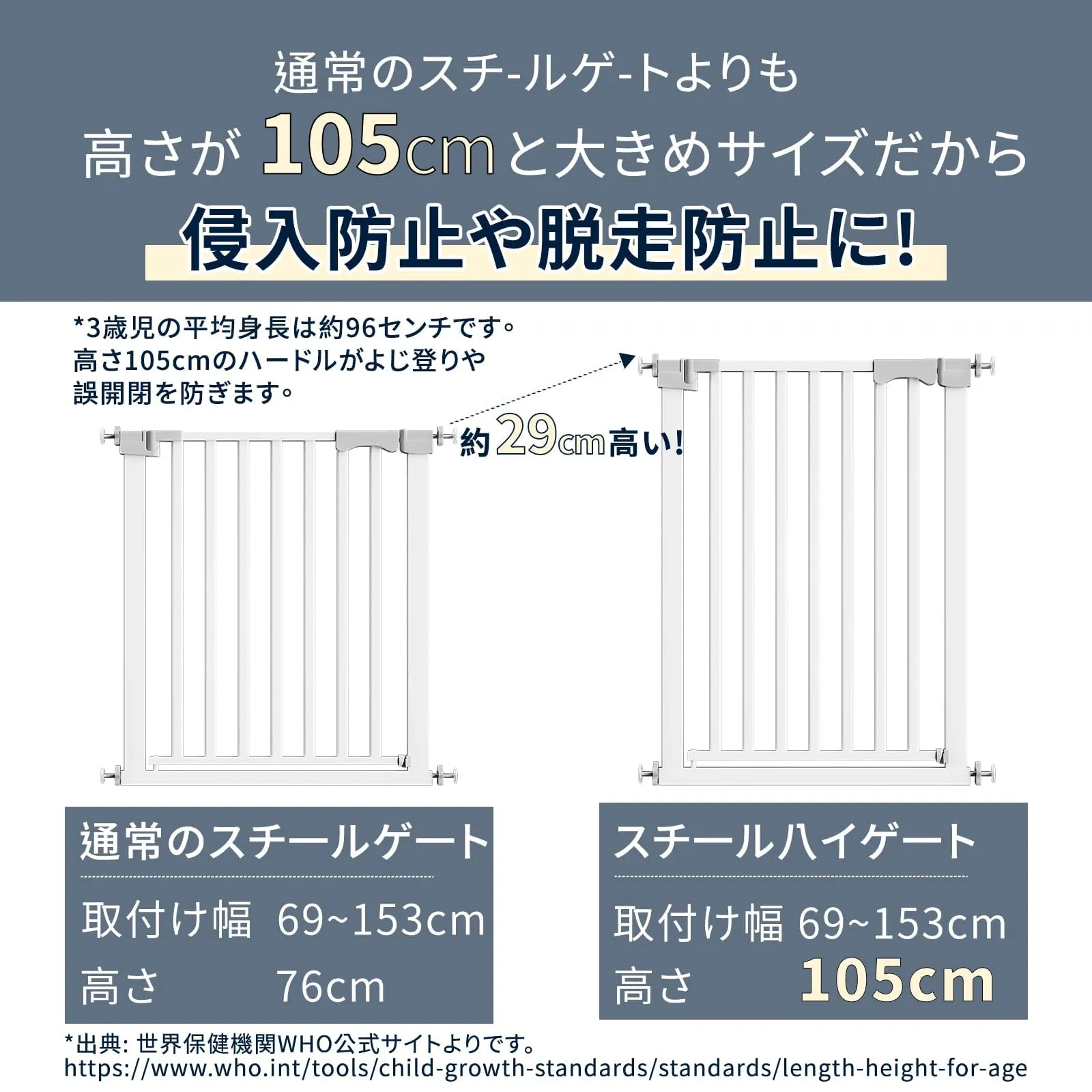 新品 コブキBUJI【2025新改良】 ベビーゲート 突っ張り式 ペットゲート ハイタイプ 幅69~153cm 高76cm 幅広 置くだけ 厚くスチールゲートドア付き 階段 玄関 台所 犬猫脱走防止 安心安全ダプルロック機能 前後90°自動開閉 防蹴パッド付き