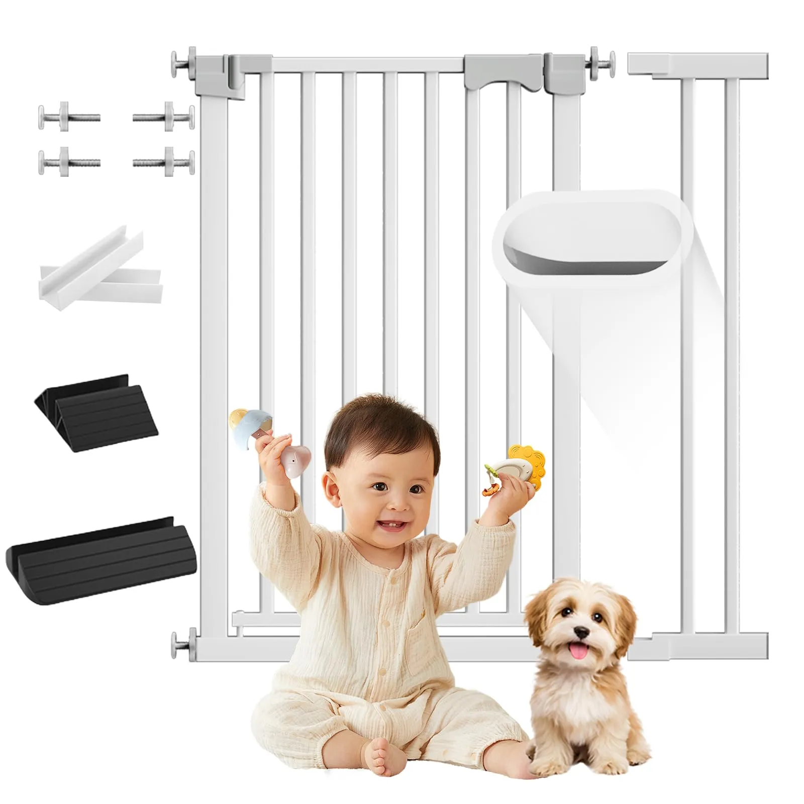 【2025新改良】 ベビーゲート ハイタイプ ペットゲート 突っ張り式 高105cm 幅90~97cm 幅広 置くだけ 厚くスチールゲートドア付き 安心安全ダプルロック機能 前後90°自動開閉 階段 玄関 台所 室内 防げん柵 犬猫脱走防止 赤ちゃん ゲート 色: 定番の白_サイズ: 幅90~97cm 高さ105cm