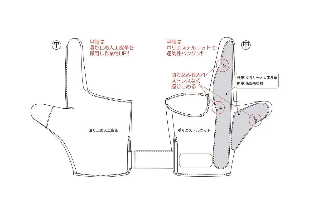 【緑興産㈱】作業性、通気性を考えた耐衝撃手袋「ゆびガード」LLサイズ 左手着用 ハンマーからの衝撃を衝撃吸収材で緩和します。 ポリエステルニットで通気性バツグンです。 軍手の上にはめるだけなので簡単です。 滑り止め加工しているのでしっかりピンを固定します。 衝撃吸収素材には切りこみを入れ、作業しやすくなっています。 -------------