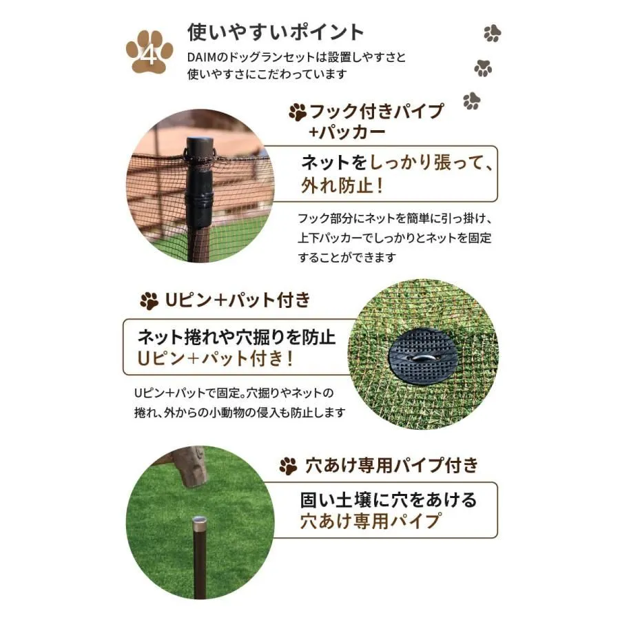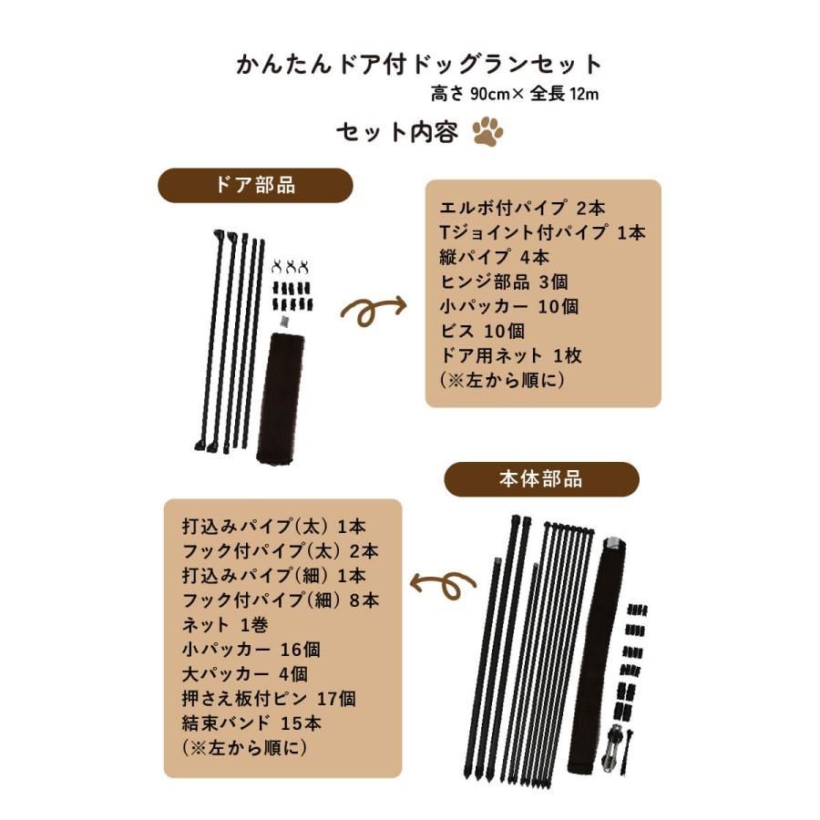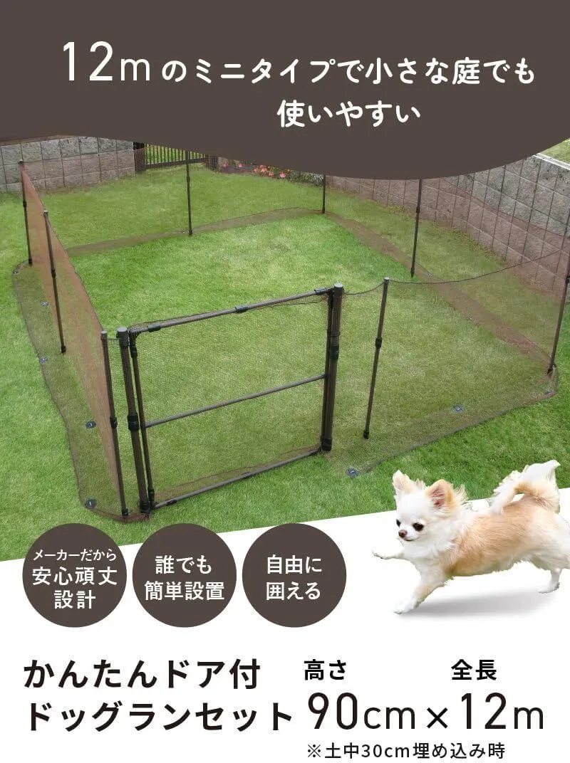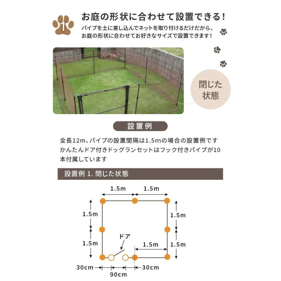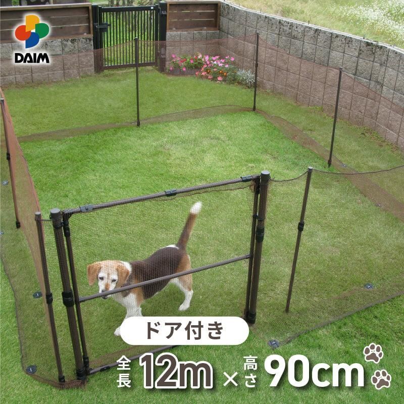 daim おてがる ドア付ドッグランセット 12m 高さ90cm 全長12m ドッグラン ペットサークル 犬 ケージ 庭 フェンス ネット サークル