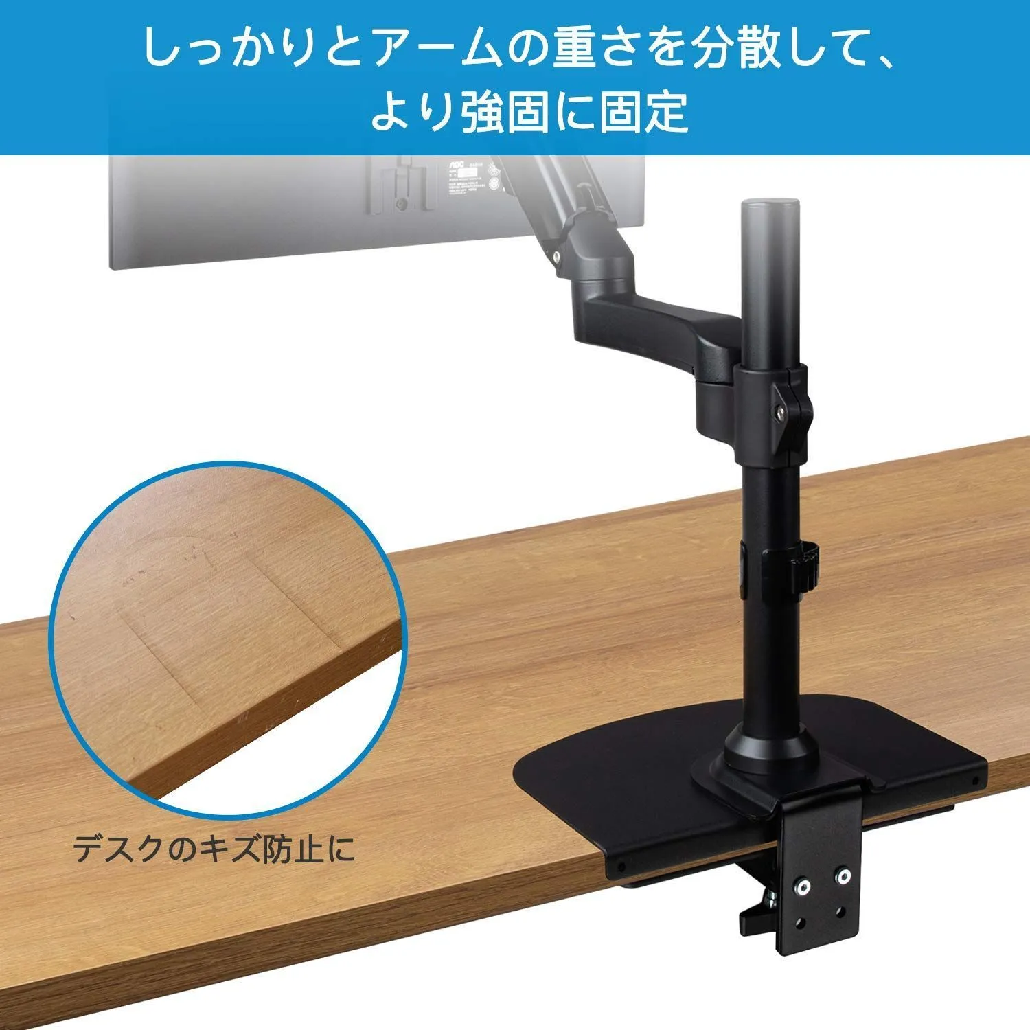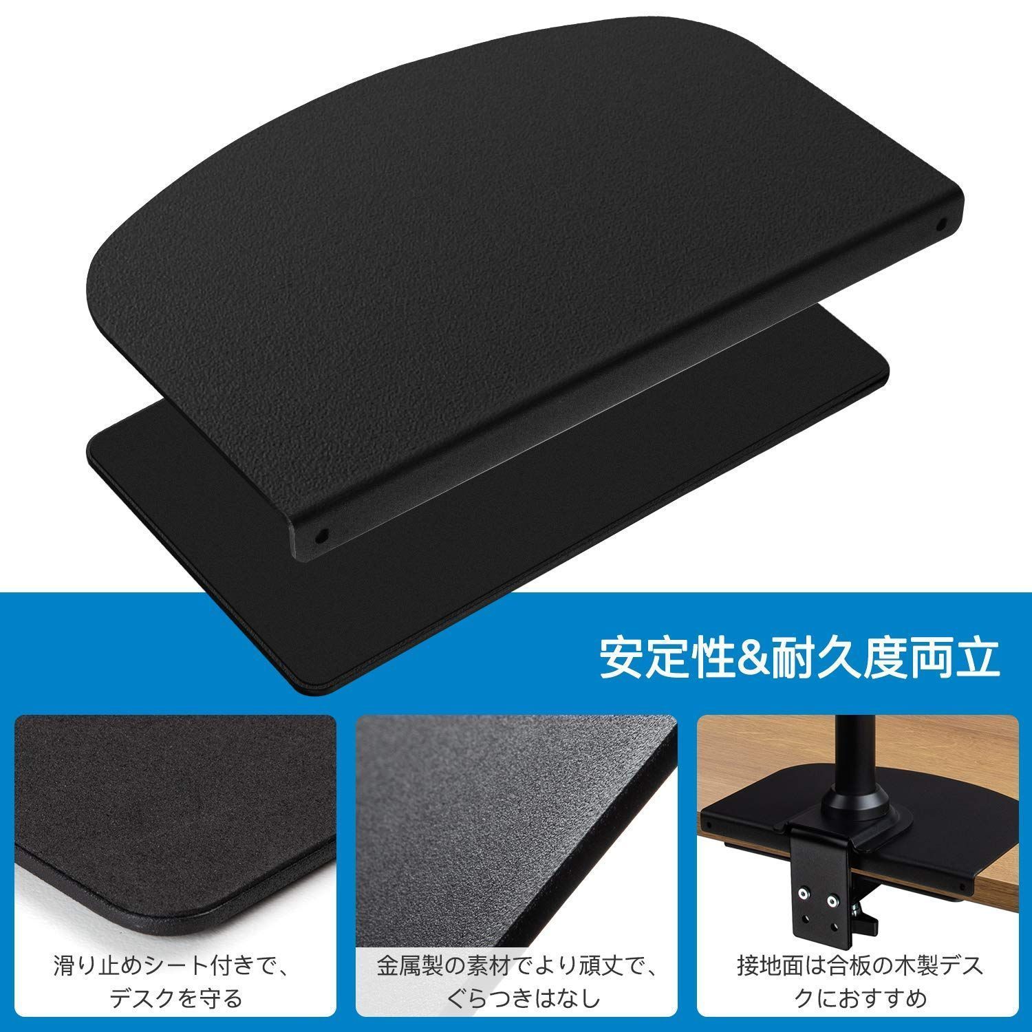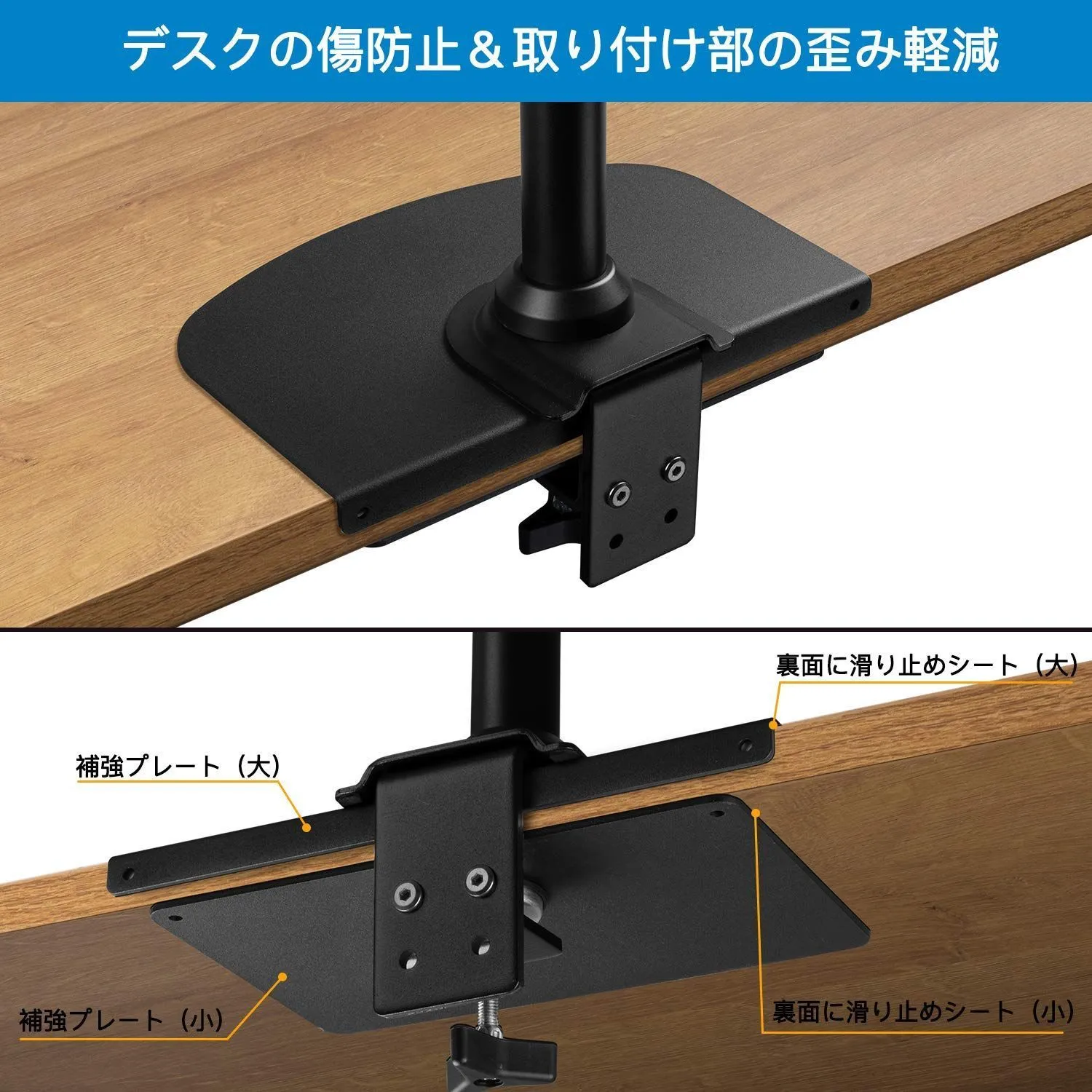 【デスクをしっかり保護】天板への設置面に滑り止めシート付きで、滑りを防止しつつ、デスクを傷から守ります。モニターアームを取り付けた後机が凹んだり、傷ついたり、跡残ったりするおそれもありません。また、プレース全体的に角が丸くされてるので、手に刺さったり切れたりすることはありません。