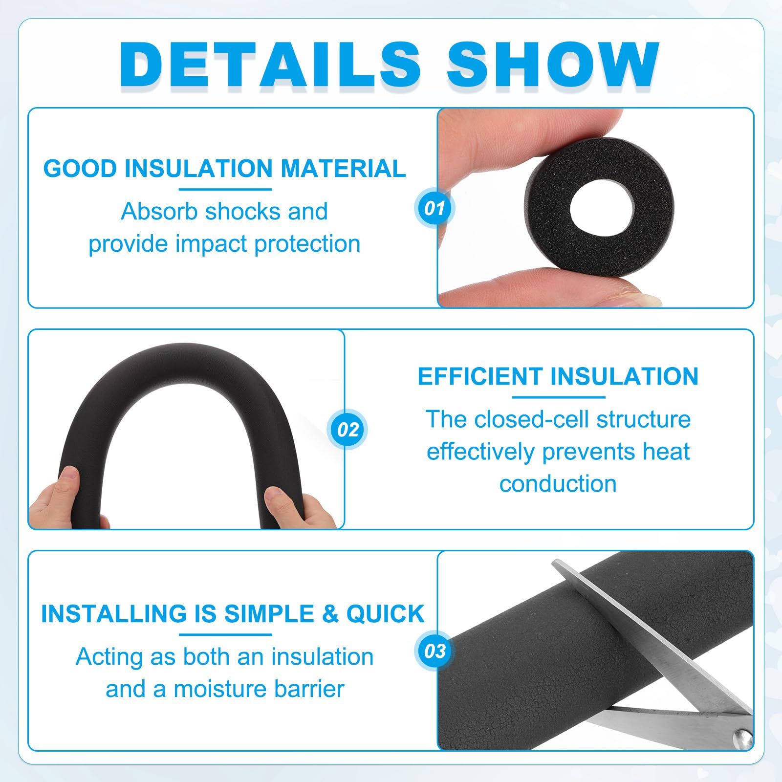 カラー:黒;素材:ニトリルゴム;サイズ(内径×外径):13 x 31 mm(1/2 x 1.22);長さ:0.9 m / 3フィート;厚さ:9 mm / 0.35;パッケージリスト:パイプ断熱フォームチューブ3個