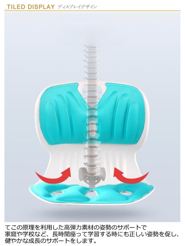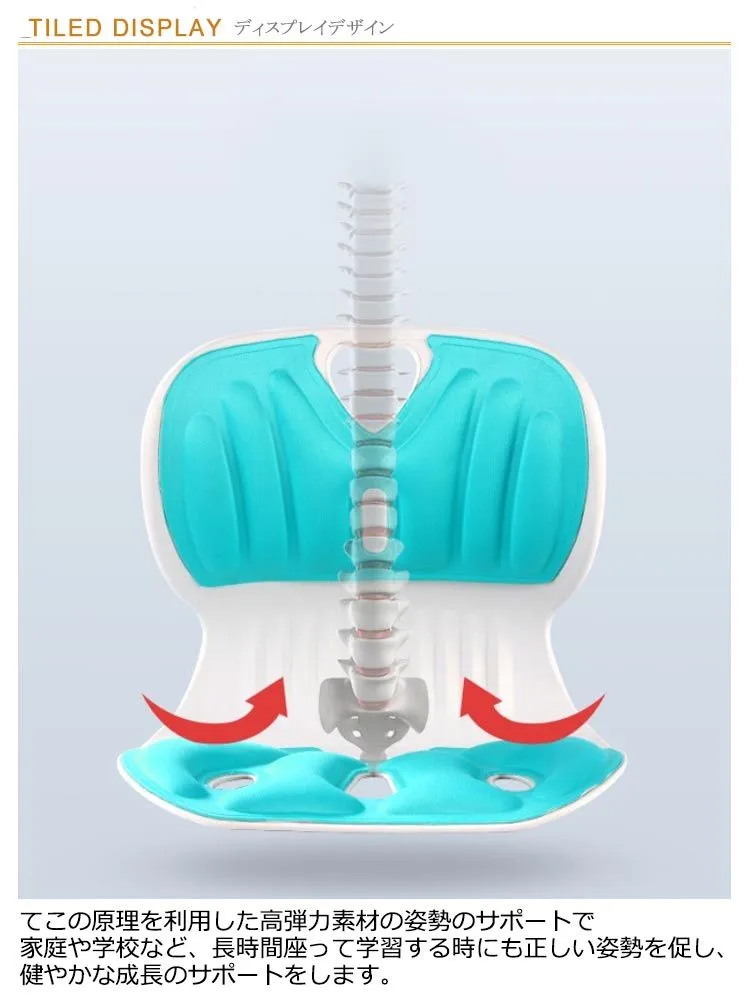 てこの原理を利用した高弾力素材の姿勢のサポートで家庭や学校など、長時間座って学習する時にも正しい姿勢を促し、健やかな成長のサポートをします。