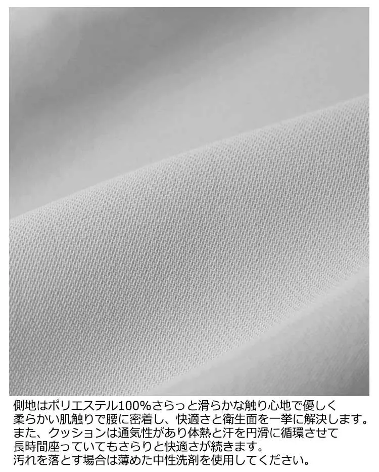 側地はポリエステル100%さらっと滑らかな触り心地で優しく柔らかい肌触りで腰に密着し、快適さと衛生面を一挙に解決します。また、クッションは通気性があり体熱と汗を円滑に循環させて長時間座っていてもさらりと快適さが続きます。汚れを落とす場合は薄めた中性洗剤を使用してください。