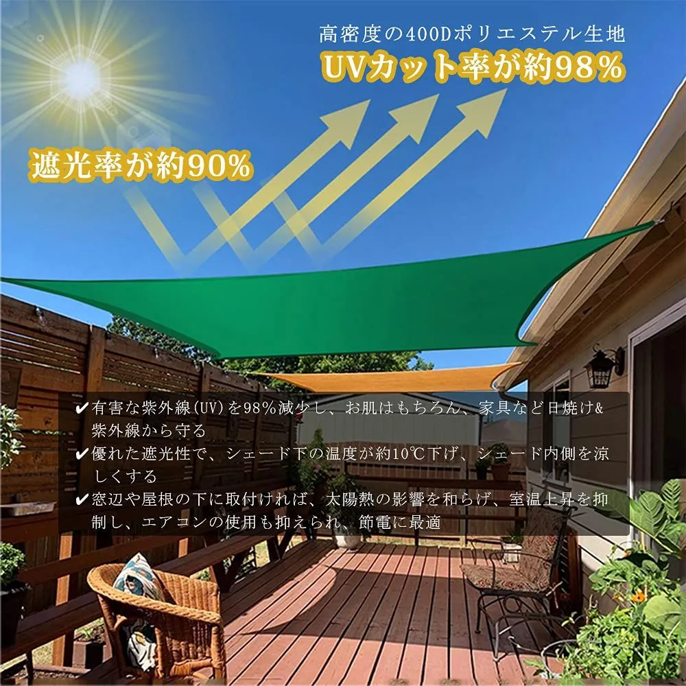【抜群な断熱効果+uvカット・日除け シェード】高密度の160GSM/400Dポリエステル素材を採用。直射日光を90%遮り、有害な紫外線(UV)を約98%カット、日焼けなど身体、植物、家具などへの傷害を軽減。目隠しとしてもオススメ。