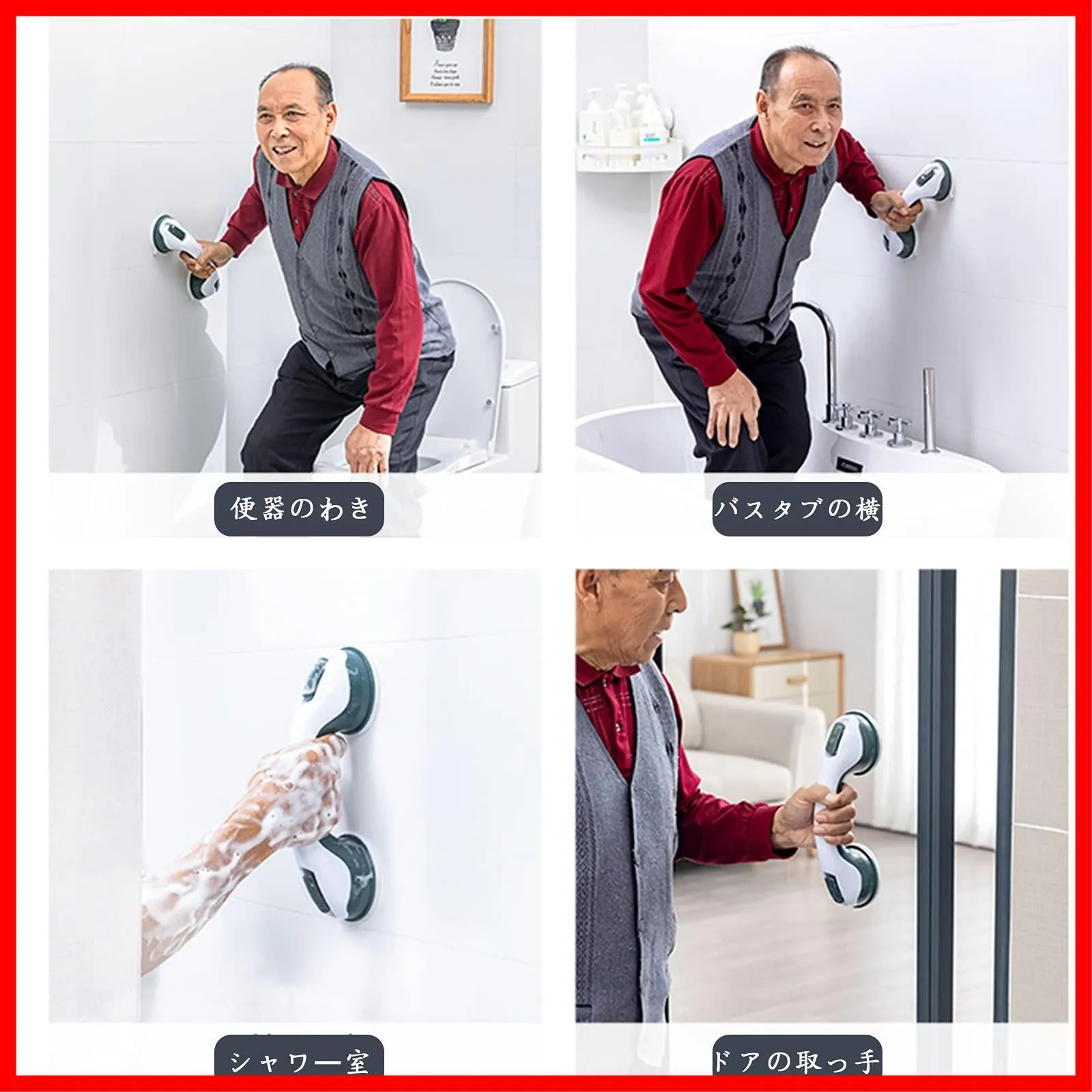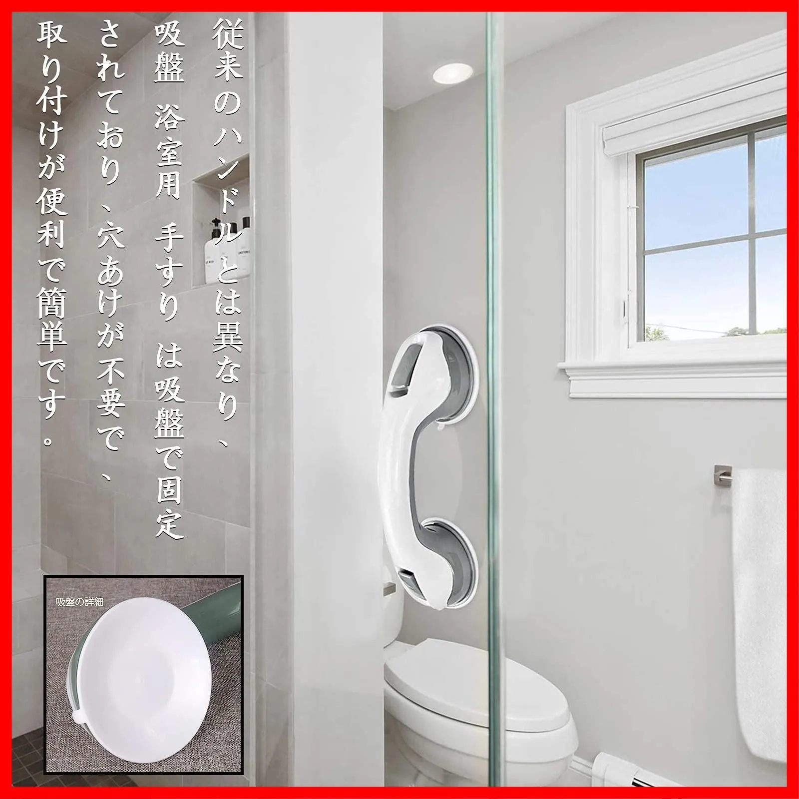 トイレ用手すり セーフティハンドル 吸盤 浴室用 手すり お風呂用 介護 高齢者 転倒防止 トイレ 階段 玄関 滑り止め 浴槽手すり 2個セット,Bocotojpで購入してください