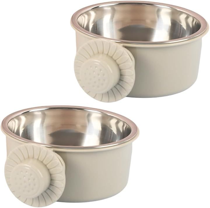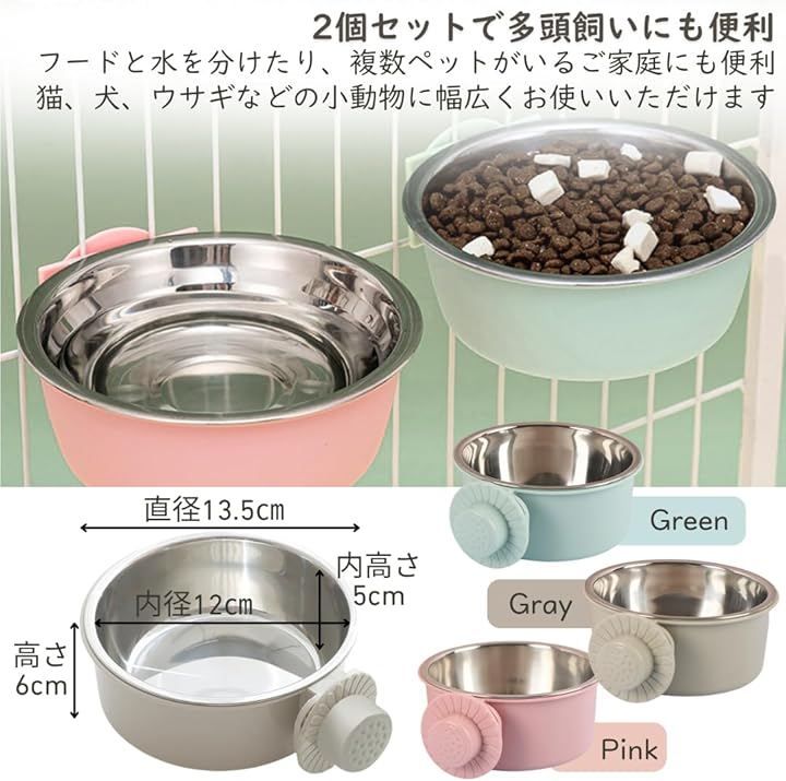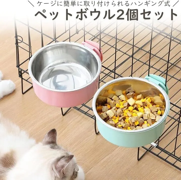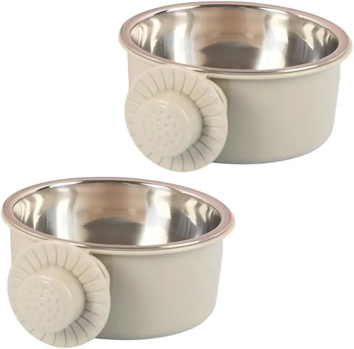 I'm so happy ペットボウル ハンガー ゲージ用 食器 餌入れ ぶら下げ式 固定 水飲み 猫 犬 小動物 2個セット (グレー)