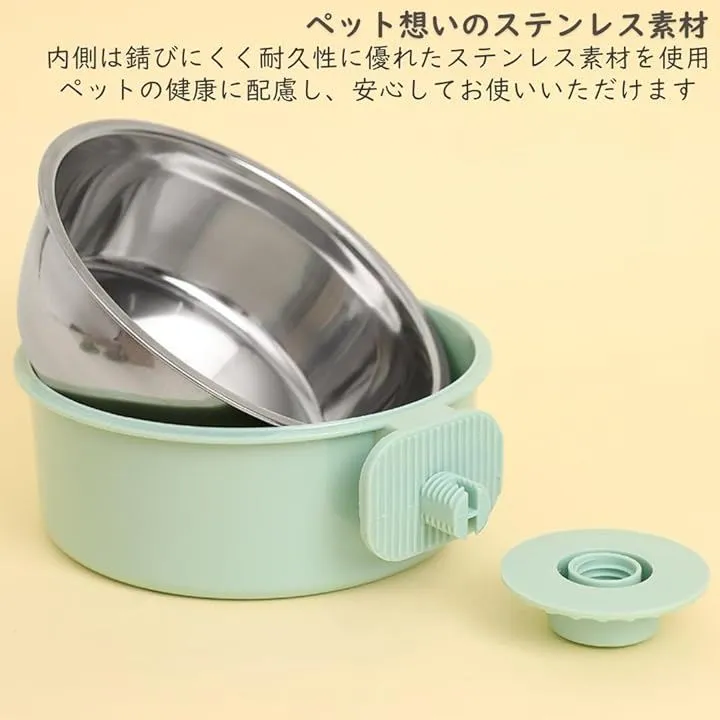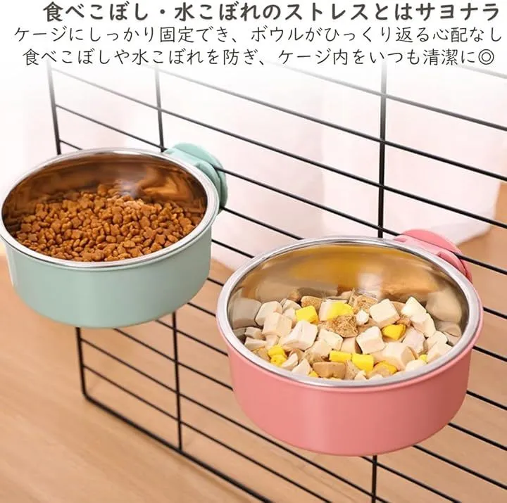 「ケージに簡単取り付け」ケージに簡単に取り付けられるハンギング式のペットボウルです。