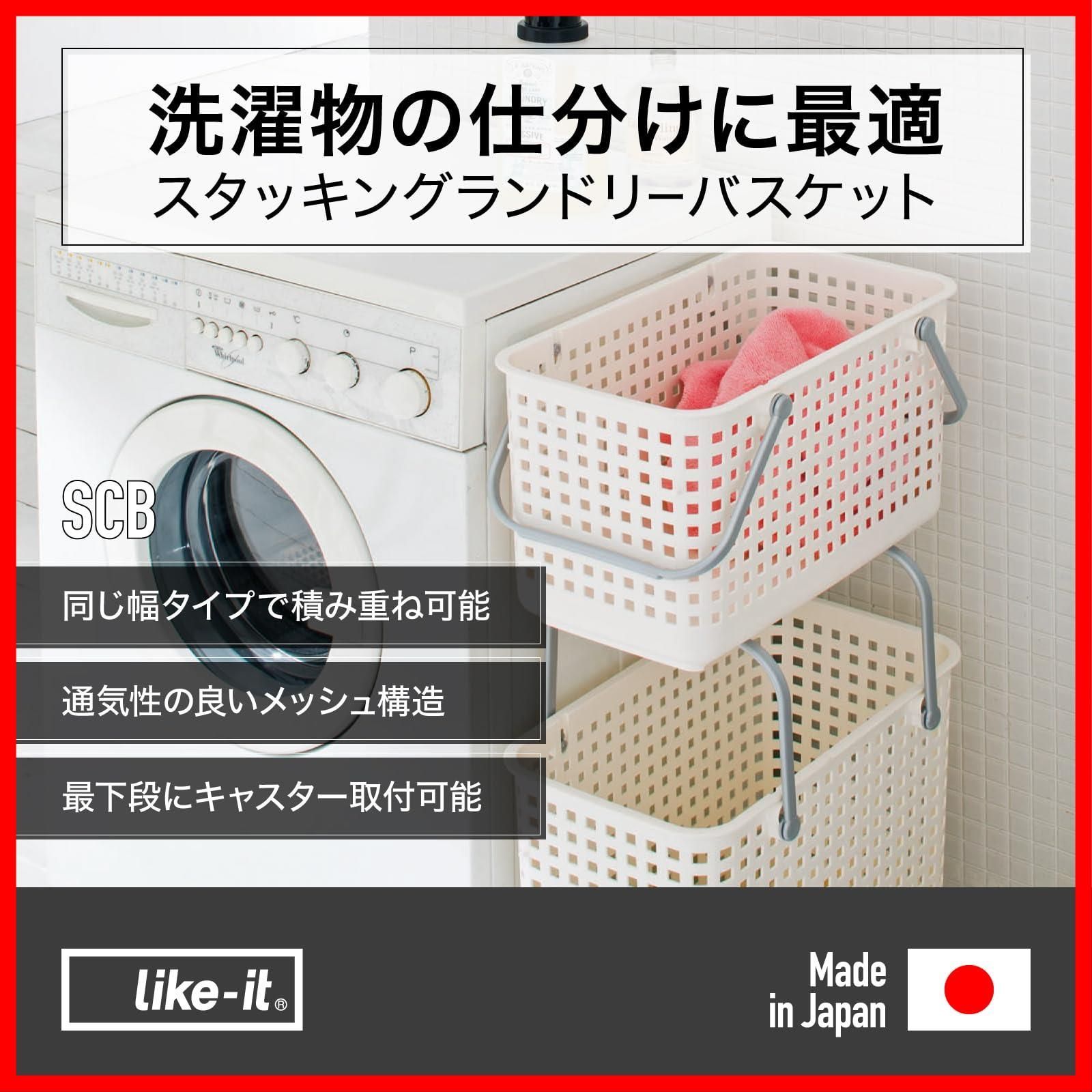 ライクイット(like-it) 洗濯カゴ スタッキング可能 持ち手付き バスケット M 約幅27.7 奥45.5 高26.8cm ホワイト 日本製 SCB-11 ランドリー収納