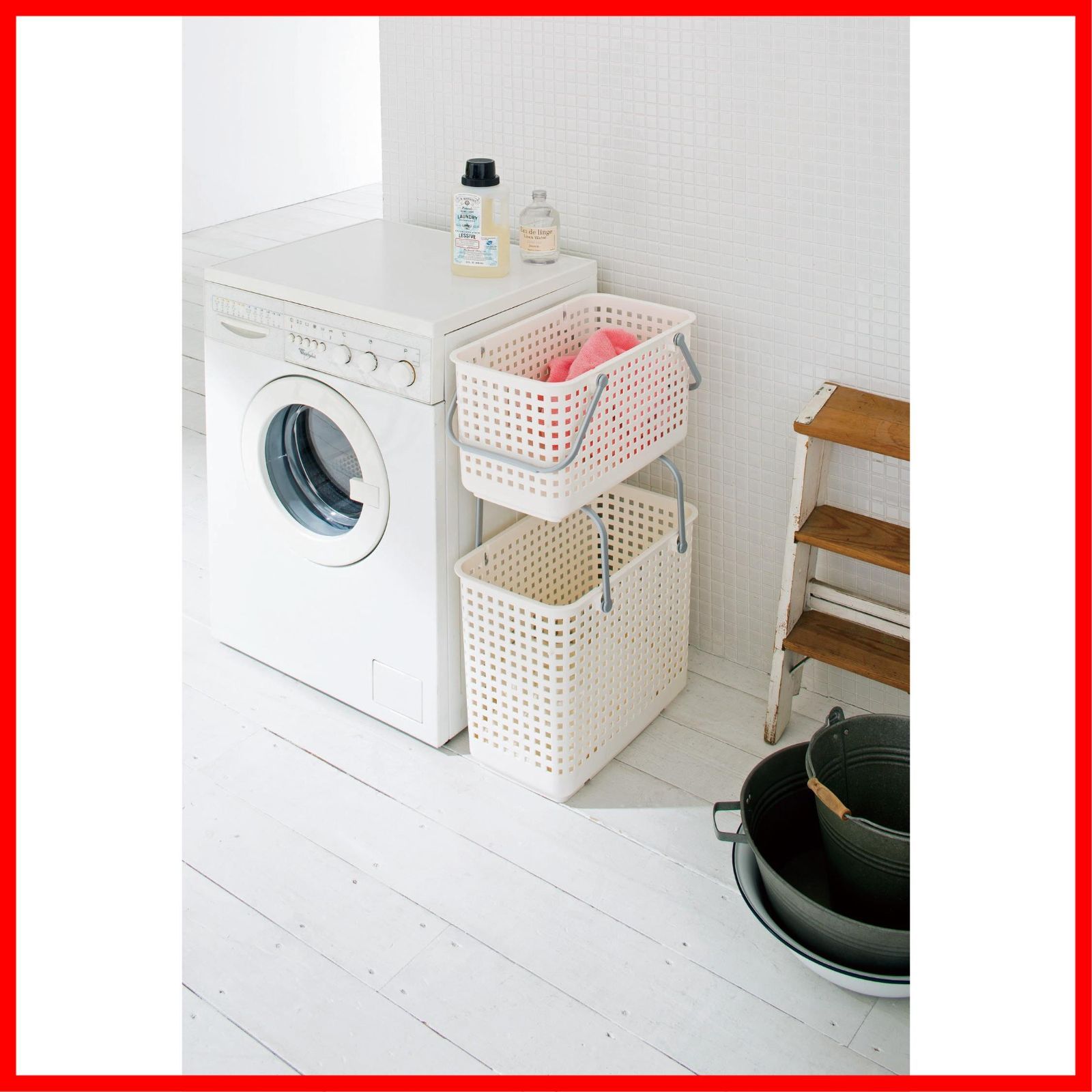【 注 意 点 】 ・ フ ォ ロ ー頂 かないと確認が取れませんのでお手数お掛けしますが、ボ タ ン一つだけ ポ チ ッ とお願いいたします( * ?? ?*) ━━━━━━━━━━━ ライクイット(like-it) 洗濯カゴ スタッキング可能 持ち手付き バスケット M 約幅27.7 奥45.5 高26.8cm ホワイト 日本製 SCB-11 ランドリー収納 サイズ:約W277×455×268mm 本体重量:約790g 素材:ポリプロピレン 生産国:日本 ハンドルスタンド時:高さ 約41.5cm 積み重ねて使用出来ます。 通気性が良いメッシュデザイン シーンによって選べる洗濯や収納に便利なバスケットシリーズ。取っ手付きで持ち運びに便利です。棚やカラーボックスの収納にも便利です。バスケットの取っ手を立てて固定することで、バスケット同士を積み重ねることができます。 より