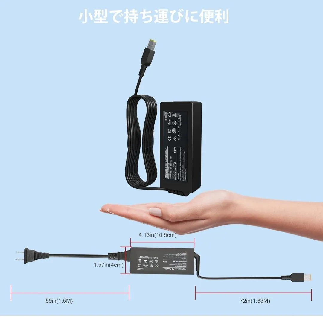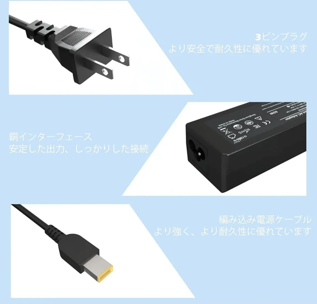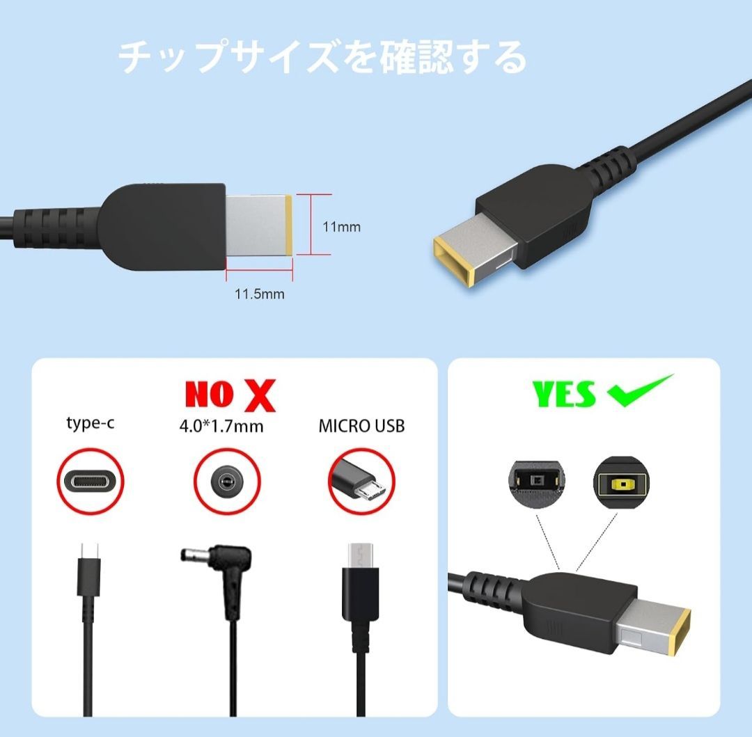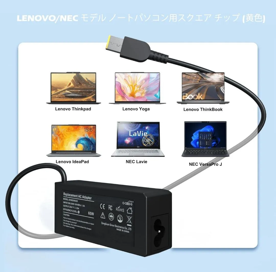 ●※「NEC Lavie用USB電源アダプタ」入力: 100-240V 50-60Hz、出力20V-3.25A/ 20V-2.25A/ 18V-3A/ 15V-3A。コネクタタイプ: USB (黄色のチップ、タイプCではありません)、ワット数: 最大65W。コードの長さ: 3M。Lenovo Thinkpad用電源アダプタ