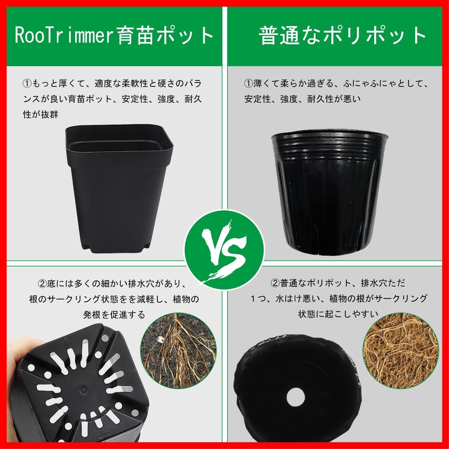 RooTrimmer 育苗ポット 2.5号 120個セット 根腐れ防止 多肉植物用 PPスクエアポット スリット排水 繰り返し使用可能 マット加工 7×7.6cm 屋内園芸 耐久プラスチック鉢