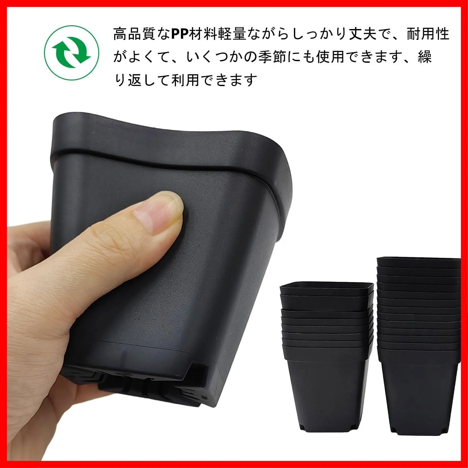 【高品質で耐久性のある新素材】この育苗ポット(育成ポット)は新しい高品質のプラスチック素材(PP)で作られており、耐久性が高く、形が崩れにくいため、繰り返し使用が可能です。プラ鉢としてもおしゃれです。