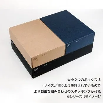 ●大小2つのボックスはサイズが揃うよう設計されているのでより自由な組み合わせのスタッキングが可能。 (※大(A4)小(A5)はそれぞれ別売りとなります。サイズとカラーをお確かめの上、ご購入ください。)