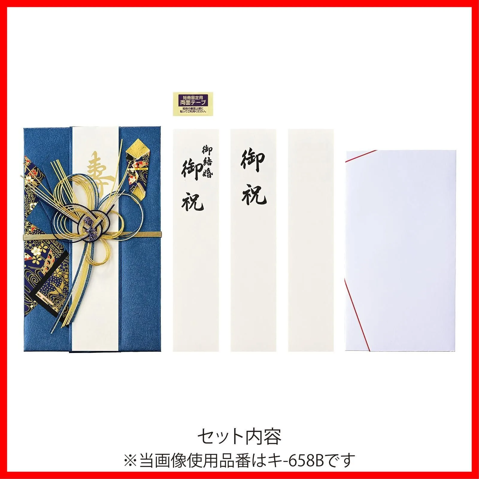 【特長】 ・120×195mmサイズの新金封です。 ・短冊(寿、御結婚御祝、御祝、無地)4枚、中袋付き。 商品名:マルアイ 祝儀袋 祝 デザイン 金封 きらり 大金 青 キ-658B ━━━━━━━━━