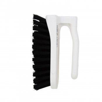 握りやすいグリップが無理なく力を伝え、しっかりとフロアをブラッシングできます。ブラシの毛丈を場所により変えており、毛丈の短い部分はコシが強くしっかりこすることができます。
