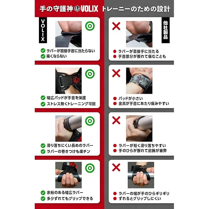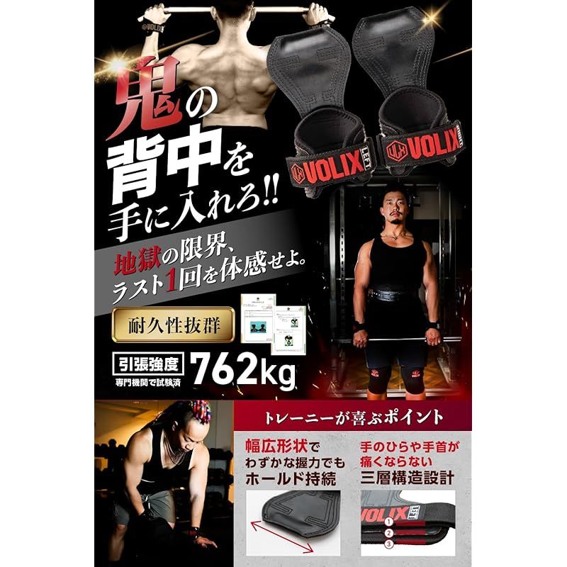【日本国内の引張試験合格済み】VOLIXノンスリップラバーは滑らないだけでなく、両手合計引張強度”762kg”で千切れる心配なく安心安全にお使いいただけます。シュラッグやヘビーローイングなどの超高重量種目でも破損の不安がなく、ハードなワークアウト環境に対応する耐久性です。