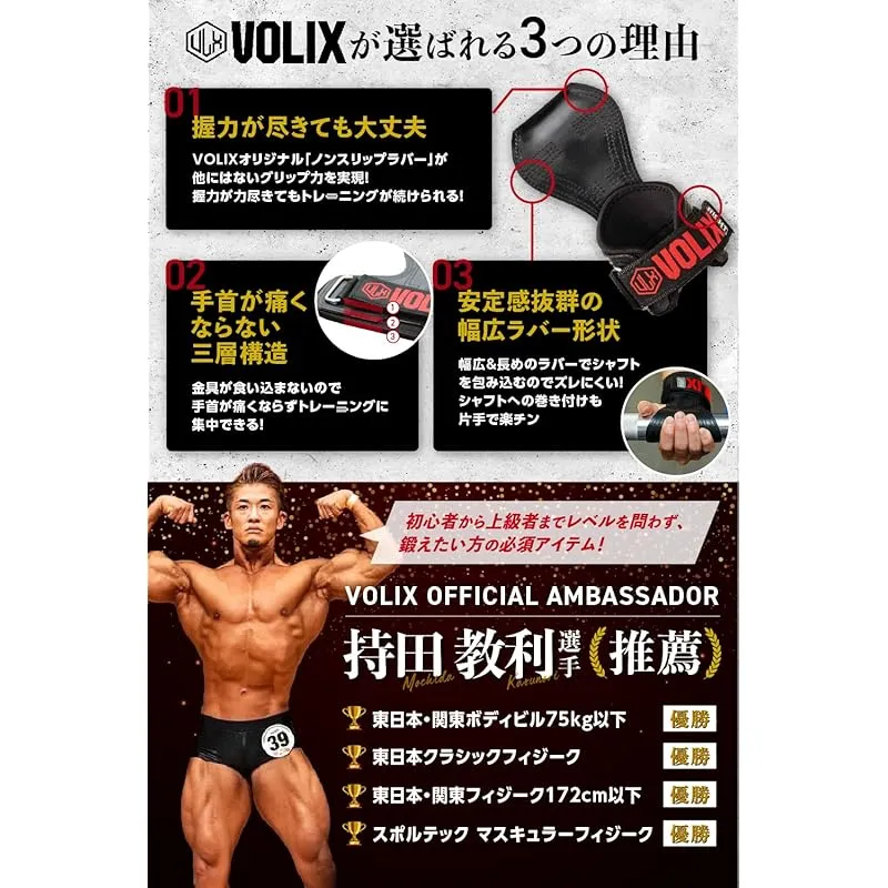 新品・【持田教利選手推奨】VOLIX パワーグリップ プロ 【手首が痛くならない】懸垂 デッドリフト 筋トレ トレーニング オレンジ 小さめ 1