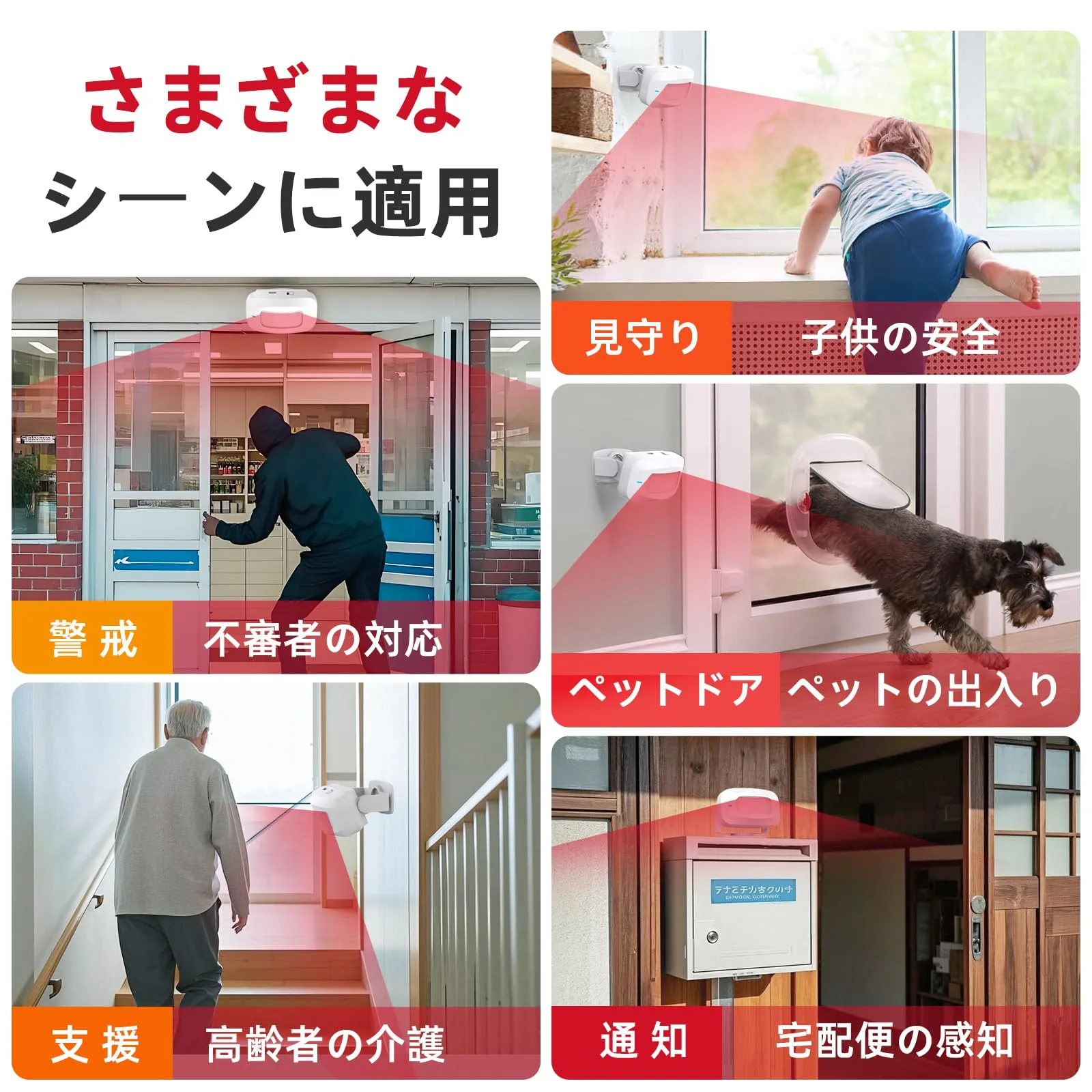 飲食店の入店チャイムとして、会社の来客通知として、介護施設の見守りツールとして、幅広いシーンで活躍します。