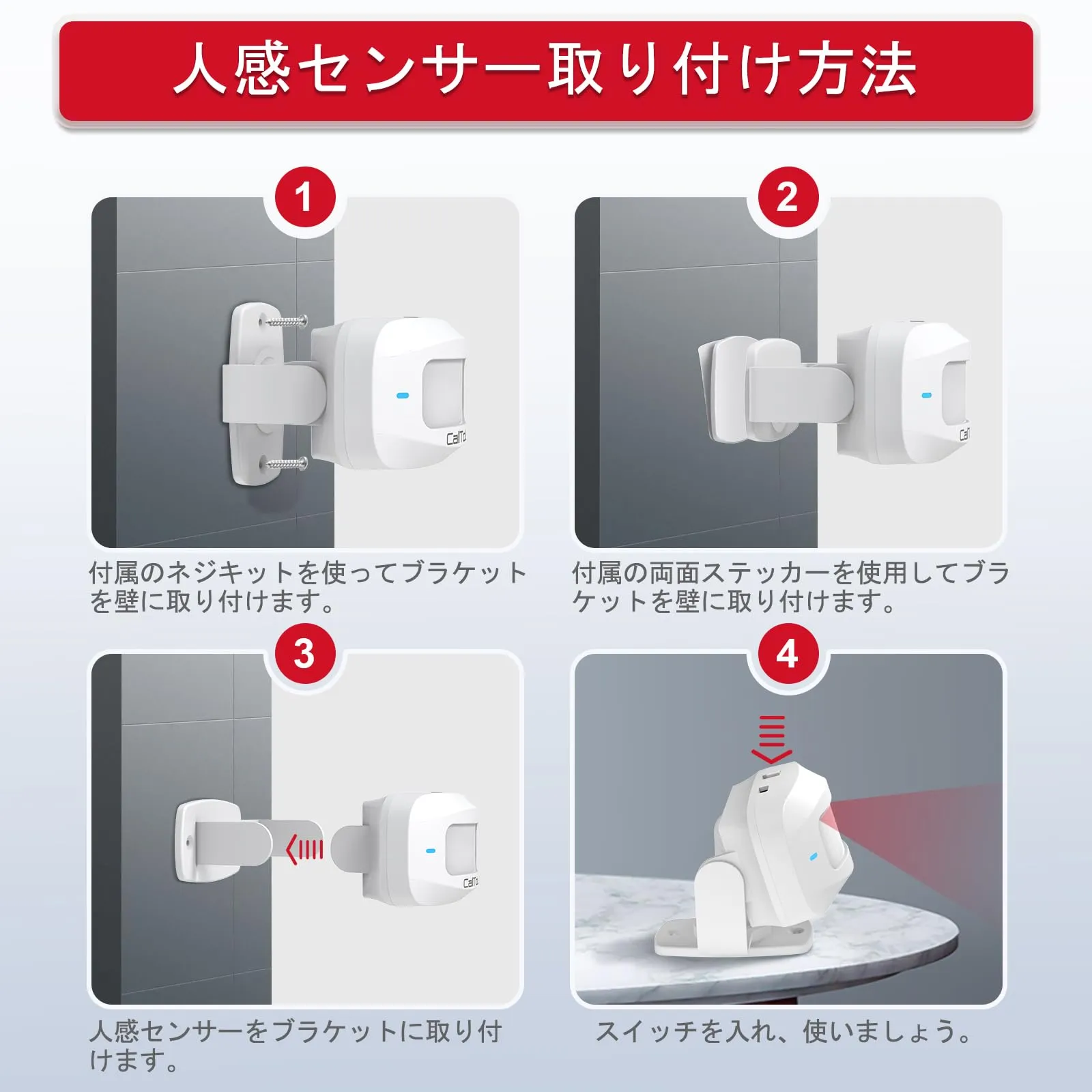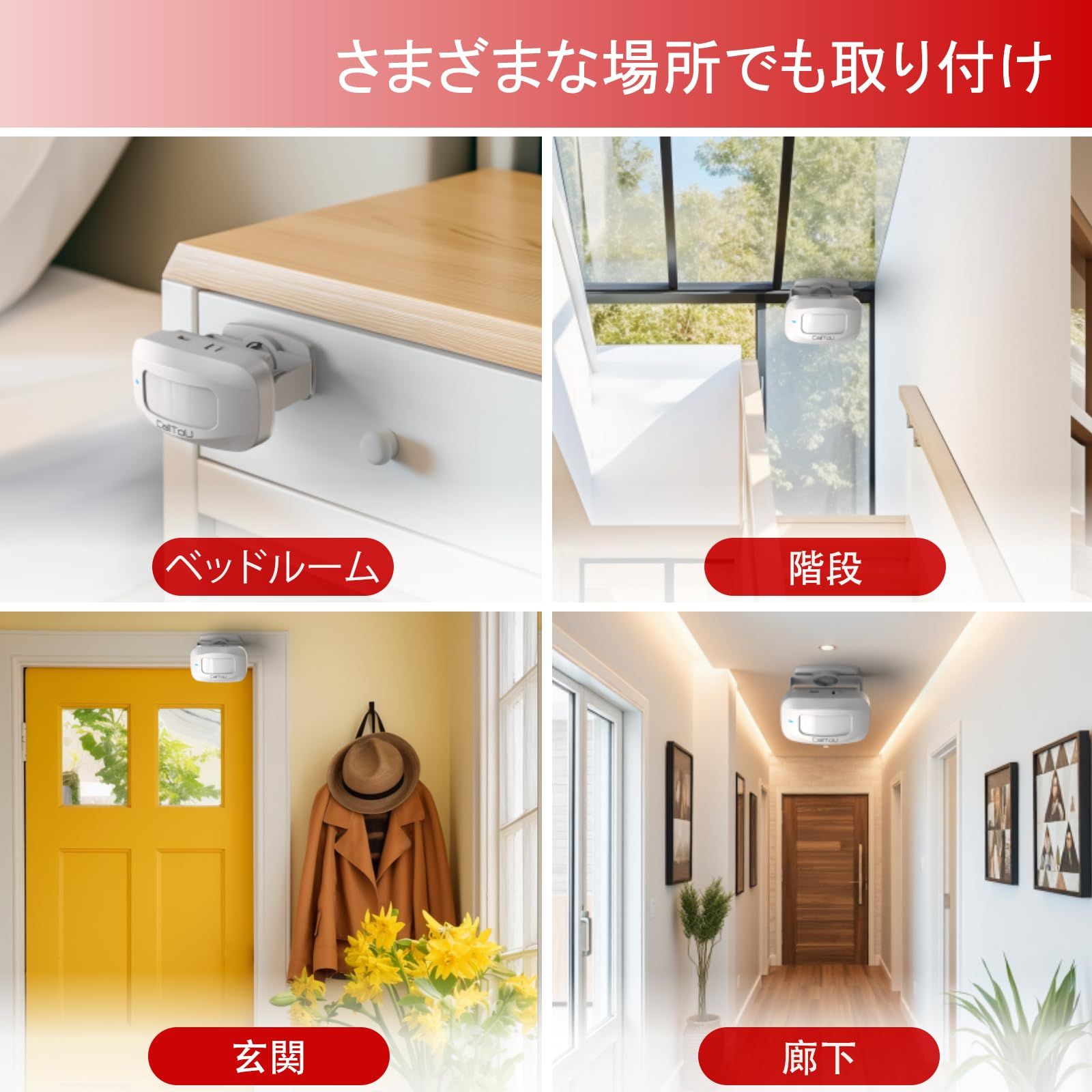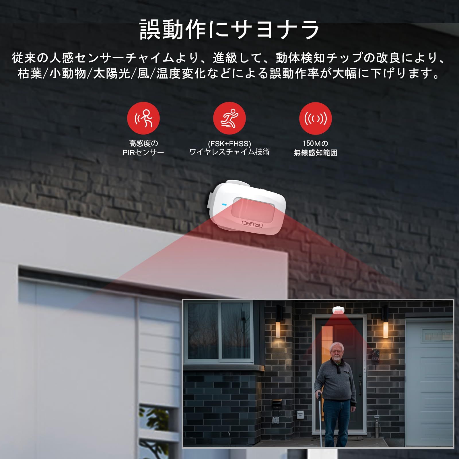 CallToUワイヤレスチャイム人感センサーは、赤外線センサー技術で「人や動き」を高精度検知。