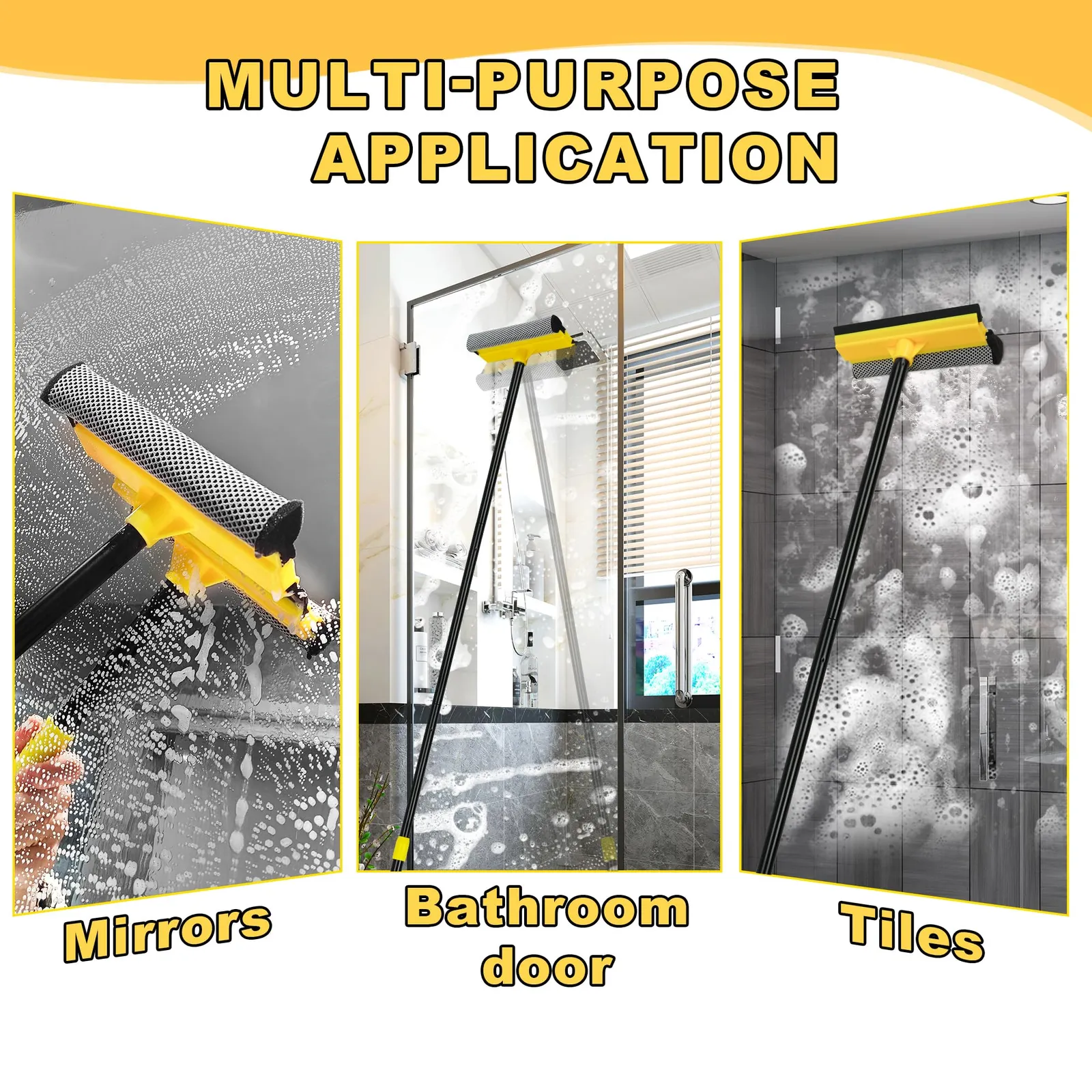 NEWE スクイジードライワイパー,スポンジ付き2in1風呂ガラスワイパー水切,窓掃除 ワイパーは,138.5cmロングポール&ショートポール付き