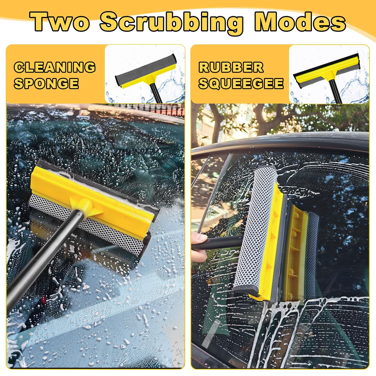 ソフトスポンジが窓を保護:この水切りワイパー 窓 は、ソフトなスポンジ付きで、ガラスを傷つけることなく汚れをしっかり落とします。窓、ガラス、シャワードア、鏡など、何度こすってもやさしく汚れを落とし、窓本来の輝きを保ち