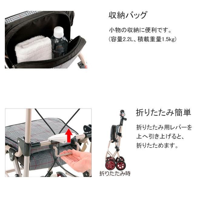 ●SGマーク取得商品 ホワイト 花柄 グレー チェック 介護 買い物 外出 通院 転倒予防 杖立て 簡単 高さ調節 座面 バッグ