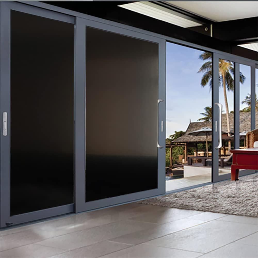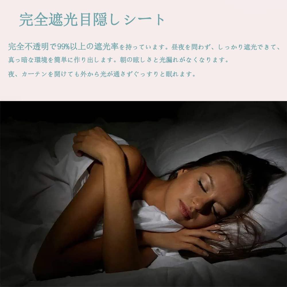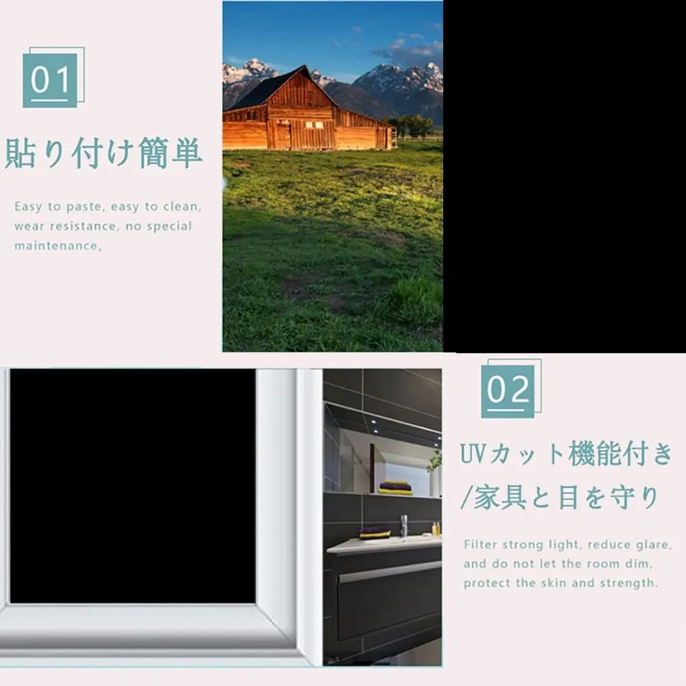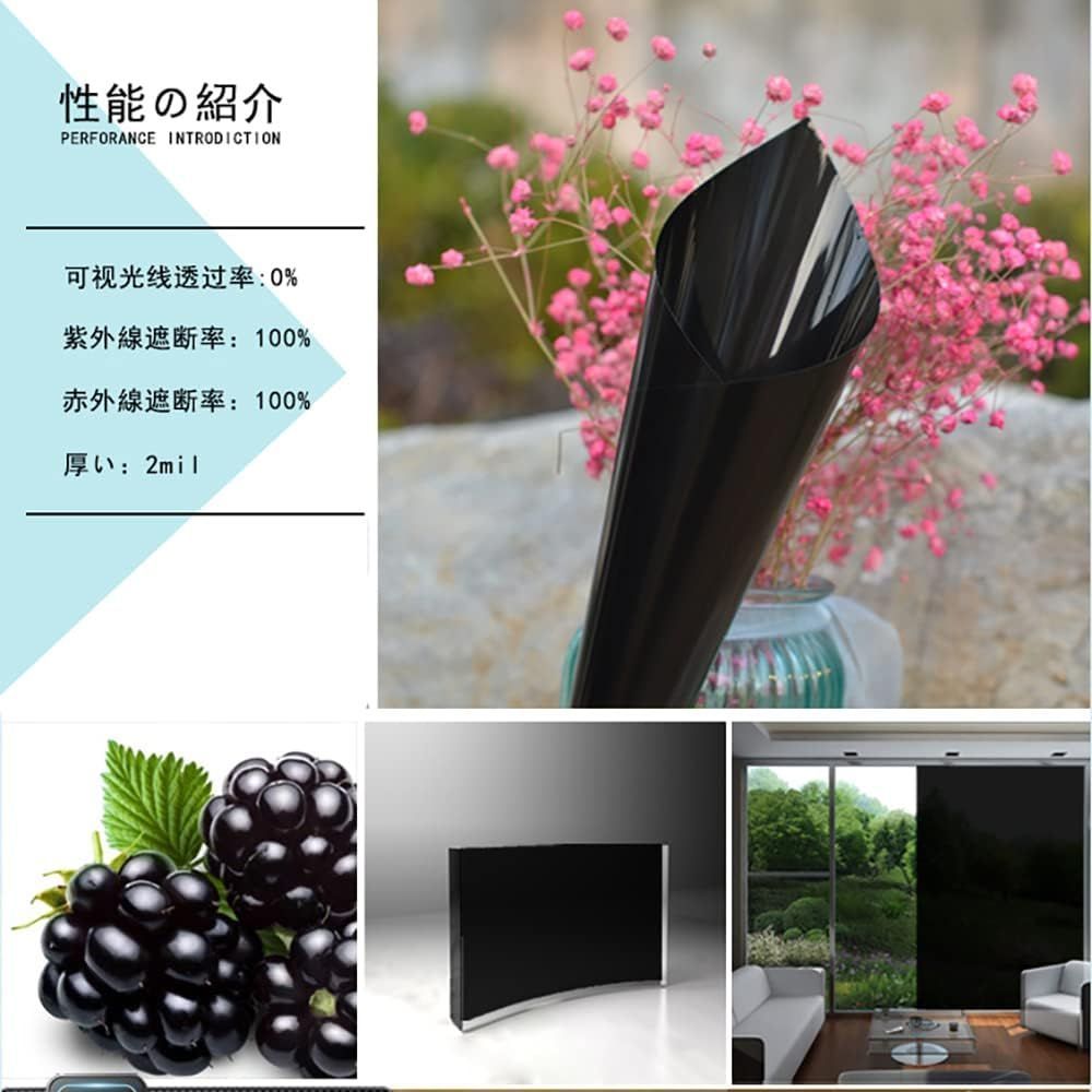 【高遮光、不透明、目隠し効果】: 可視光線透過率0%、不透明、非常に優れた遮光フィルムです。黒色すりガラス調。優れた遮光性をお求めの方、自然光・太陽光で目がまぶしいと感じる方におすすめ。大切なプライバシーをきちんと守ってくれます。
