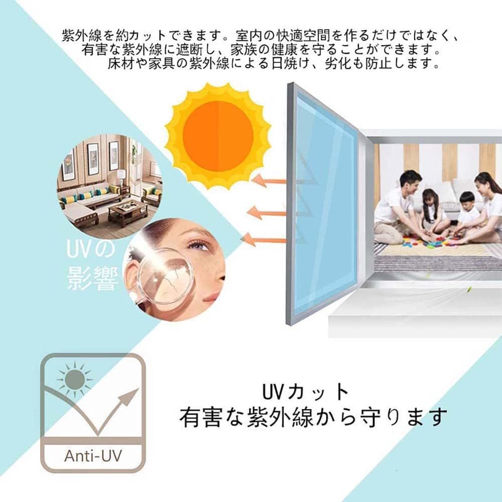 【UVカット、有害な紫外線から守ります】:(UV)紫外線透過率0%。ガラスを通して入る有害な紫外線をカットします。(褪色劣化防止)ローリングや畳、カーペットなどの床材、インテリア・家具の紫外線による日焼け、変色、劣化を防止します。