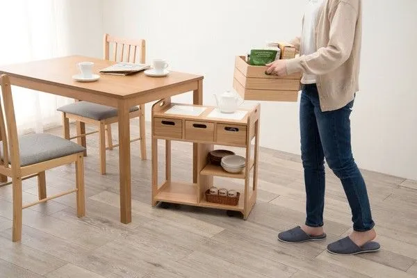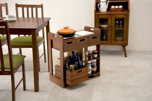 テーブル下に収まる天然木キッチンワゴン FL-3637が登場です!
