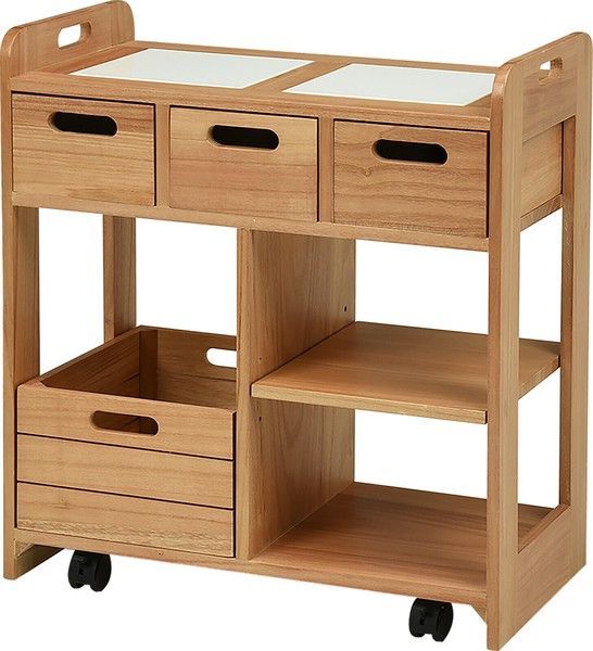 テーブル下に収まる天然木キッチンワゴン FL-3637