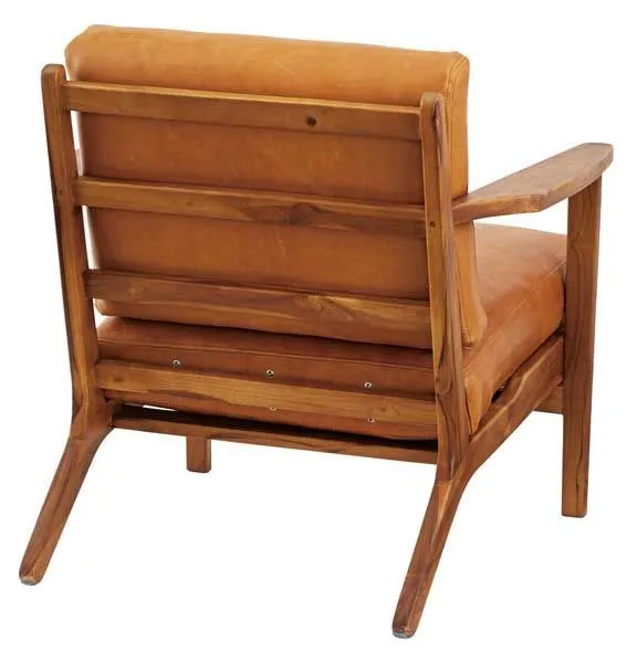 天然木(チーク)と本革・合皮の一人掛けソファ「W69×D77×H74×SH40cm」No.620