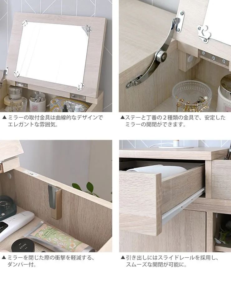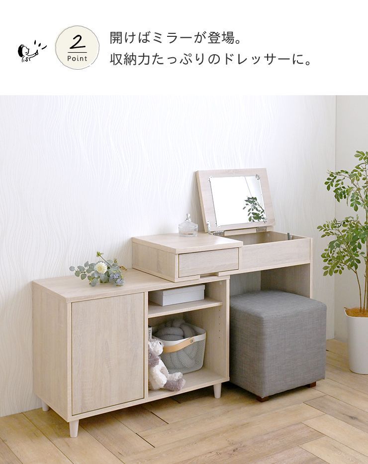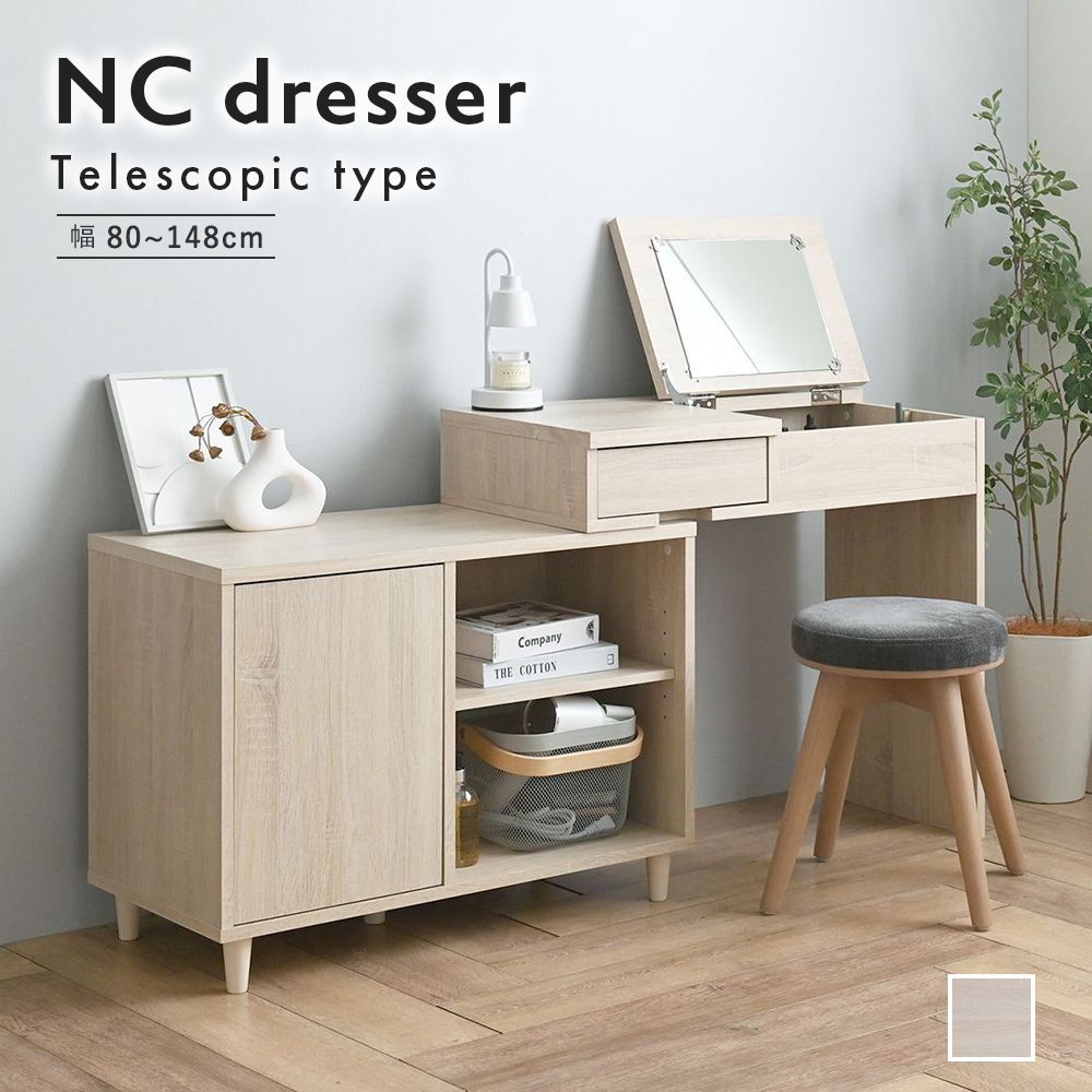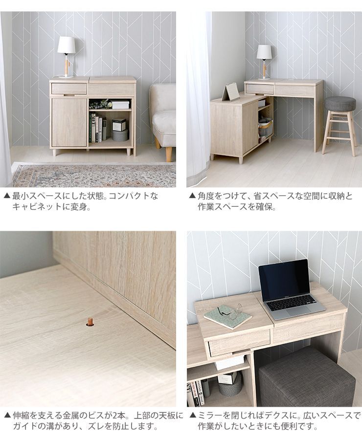 [幅80~148cm] 伸縮デスクドレッサー 鏡台 ドレッサーテーブル キャビネット 化粧台 コスメテーブル 3401