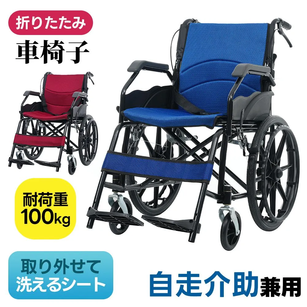 【洗える座面シート】車椅子 アルミ製 軽量 自走式 介助用 コンパクト 折りたたみ 折り畳み 自走介助兼用 四輪 ノーパンクタイヤ 介助ブレーキ付き キャスター付き 介護用品 自立式 軽量車椅子 おしゃれ 介護 福祉用具 車いす 耐荷重100kg