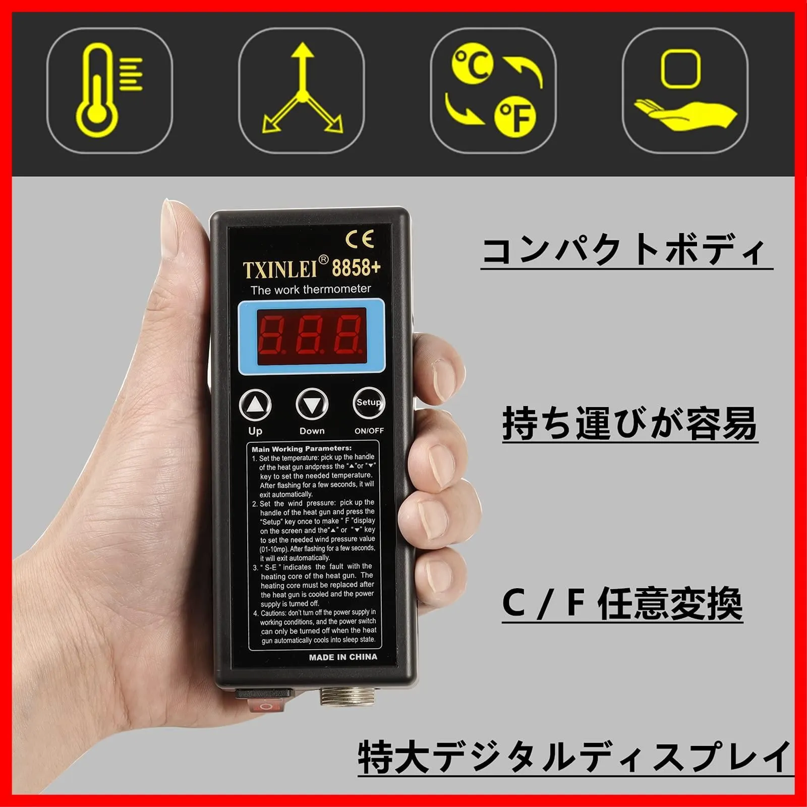 【LED ディスプレイ画面】ホットエアーガンはマイコンピュータのゼロクロストリガ温度制御、LED 画面で熱風の温度を表示します。温度は安定しており、空気の流れの影響を受けません。 作業中に、作業温度は一目瞭然で、安全性がアップし、操作も安心です。